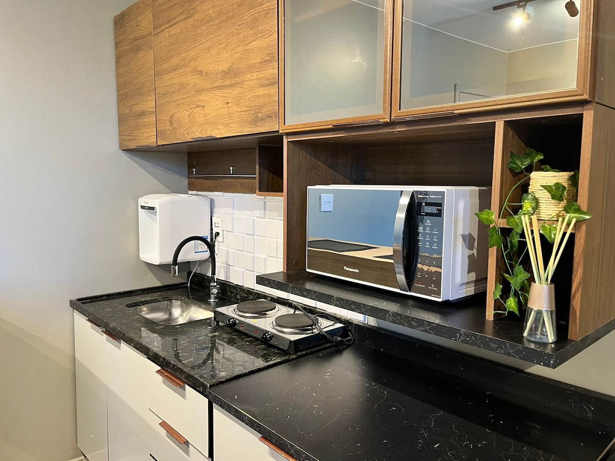 Genießen Sie ein Erlebnis an diesem eleganten und gut gelegenen Ort in Plano Piloto, in Asa Norte. Ideal für Alleinreisende oder Paare, die Gemütlichkeit und Raffinesse suchen. Kleines Loft komplett mit: Klimaanlage, Luftbefeuchter, Bett mit hochwertiger Bettwäsche, 3 Kissen, Handtücher, Smart-TV mit NETFLIX UND GLOBOPL, Highspeed-Internet mit Schreibtisch. Voll ausgestattete Küche: Waschmaschine und Trockner, Minibar, Herd, Mixer, Mikrowelle, Besteck und Zubehör.