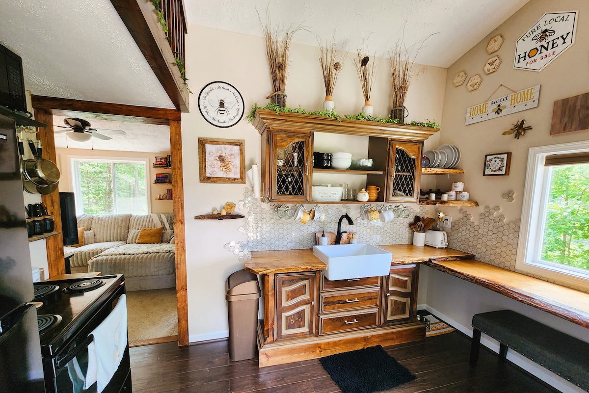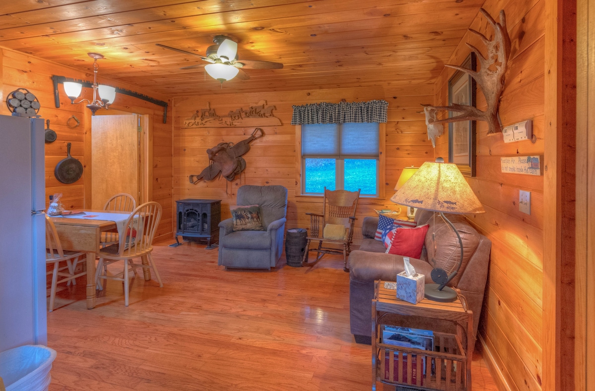 Stolzer Superhost! Dieses Blockhaus ist wie für dich gemacht, um dich zu entspannen und zu erholen. Es liegt inmitten der Bäume mit den Vögeln, Eichhörnchen und Hirschen, um dich zu unterhalten. Es verfügt über alle gemütlichen Funktionen, die du in einer Hütte erwarten würdest, und mehr. Setz dich zu jeder Jahreszeit mit einer kuscheligen Decke um dich herum und einer dampfenden Tasse Kaffee auf die abgeschirmte Veranda. Genieße nachts die Feuerstelle und röste Marshmallows. Abenteuer sind nur Minuten entfernt. Wandern, Rafting, Kajakfahren, Mountainbiken, Fliegenfischen und vieles mehr!