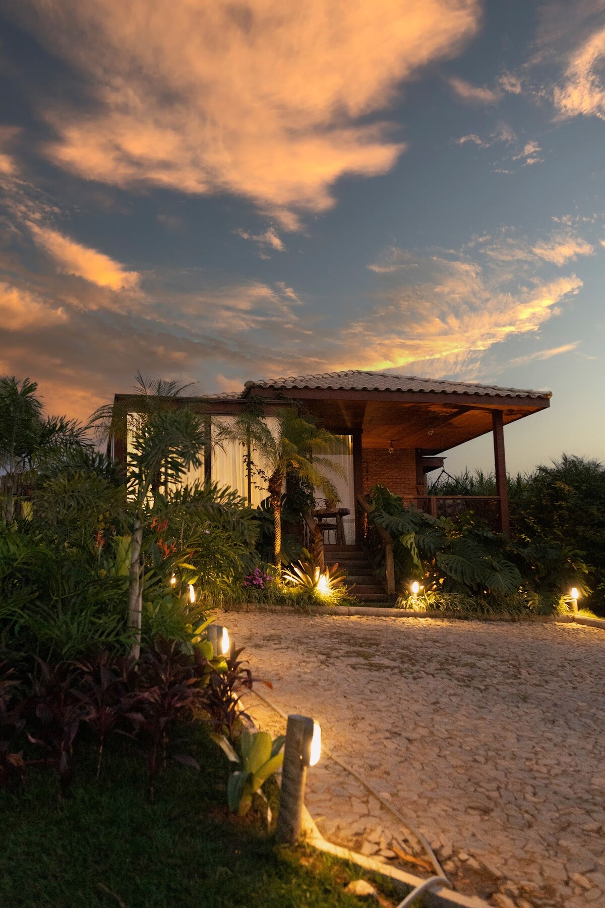 Als Teil der romantischen Villa Pouso Alto verfügt die Grotte über einen sehr großen (100 m2 Innenfläche + Balkon) und komfortablen Raum für ein Paar mit einem einzigartigen Blick auf die Berge. Seine Architektur verbindet das Rustikale der Chapada mit Raffinesse und Modernität, was den Aufenthalt sehr angenehm und mit großem Komfort macht. Es verfügt über Hydro, überdachte Terrasse, Klimaanlage, 65-Zoll-Fernseher, Soundturm, gemeinsamer beheizter Pool mit charmanter Aussicht. *OPTIONALES FRÜHSTÜCK separat zu bezahlen. ZEITPLAN in der Buchung