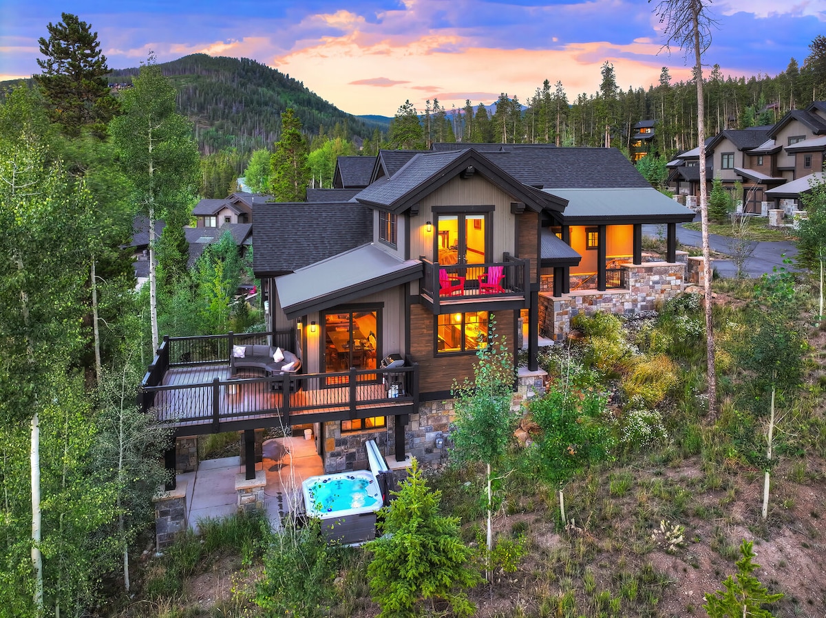 Panoramic views greet you from the second story deck. The spacious, open-concept great room offers a perfect spot for groups! This home features a private hot tub, fire pit and is steps to a free shuttle to downtown Breckenridge or Frisco. Access the best in class golfing, skiing, hiking and biking, just minutes from your front door. Enjoy a stress-free stay in this brand new home with all essentials provided from linens to espresso machine to ski storage, this home has everything you need!