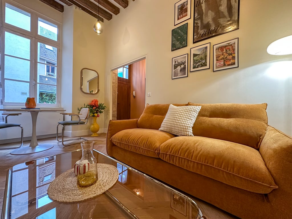 Studio im historischen Viertel von Chartres, 3 Minuten zu Fuß von der Kathedrale, allen Geschäften und weniger als 10 Minuten vom Bahnhof zu Fuß entfernt. Die Rue des Ecuyers ist eine Fußgängerzone, sehr ruhig, eine der schönsten und typischsten von Chartres. Bett für 2 Personen und Schlafsofa für 2 Personen. WLAN, Freebox und Netflix kostenlos. Einbauküche mit Induktionskochfeld, Backofen und Mikrowelle, Geschirrspüler, Nespresso, Wasserkocher, Toaster. Eigenständiger Check-in mit Schlüsselbox.