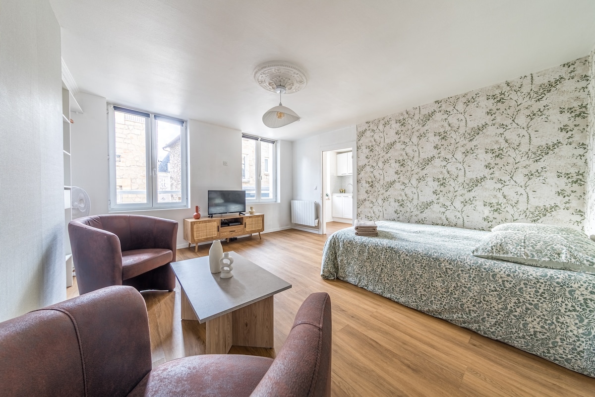 Großes renoviertes Studio im historischen Zentrum Zur Verfügung in der Unterkunft: - Bettwäsche und Handtücher - Begrüßungsprodukte: Tee, Kaffee, Madeleines, Duschgel - WLAN Glasfaser - Smart-TV - Waschmaschine/Trockner - Geschirrspüler - Mikrowellenherd - Induktionskochfeld - Senseo-Kaffeemaschine - Wasserkocher - Kühlschrank - Mini-Ankleide Optional: - Frühstück im Restaurant Chez Rosette 8 €/Pers. - Späte Abreise 13 Uhr / Zuschlag 10 € Eigenständige Anreise ab 16:00 Uhr und Abreise vor 11:00 Uhr