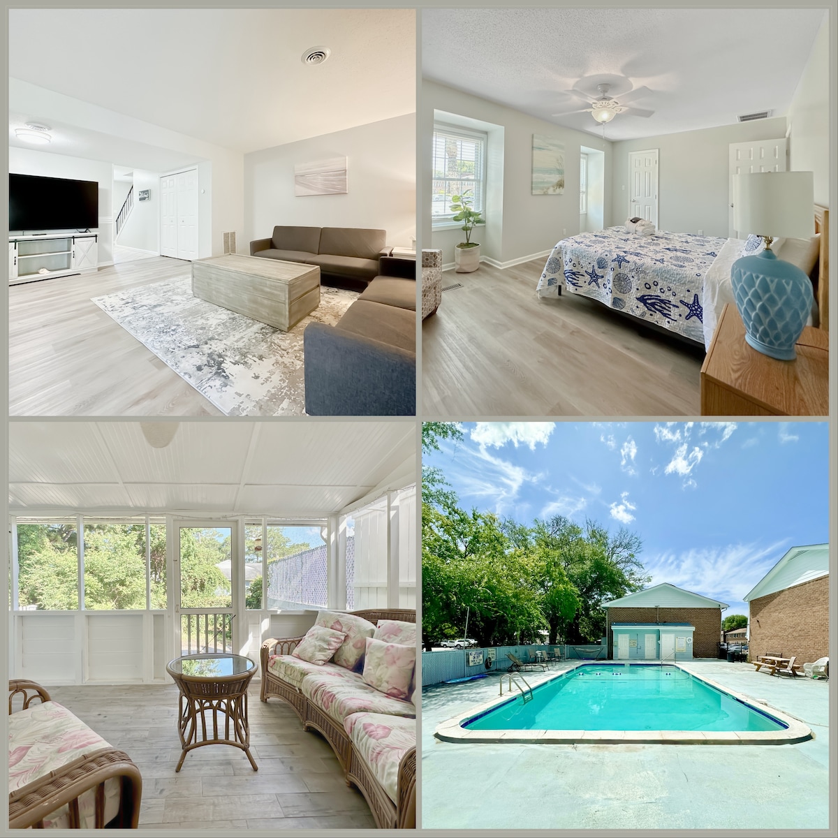 Urlaub im Herzen von Myrtle Beach! Das Hotel liegt in einer ruhigen und ruhigen Gegend, nur 0,5 Meilen vom Broadway am Strand und 0,75 Meilen vom Meer entfernt. Der private und abgeschiedene Garten bietet einen eingelassenen Pool, eine Außenküche, einen Fernseher, eine Feuerstelle mit viel Sonne und eine überdachte Terrasse für Schatten. Das komplett renovierte Haus bietet 4 Schlafzimmer, 4 Bäder und bietet bequem Platz für 8-10 Personen. Mehrere Golfplätze innerhalb von 10 Minuten. Lage....Lage....Lage!