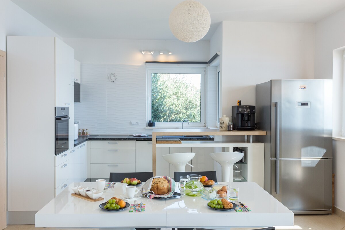 Die Villa Bonakyra ist von alten Oliven- und Johannisbrotbäumen umgeben; nur wenige Schritte von einem klaren Meer/Strand entfernt. Die Villa Bonakyra mit Blick auf die Elaphiti-Inseln bietet 3 Sonnenbereiche und garantiert atemberaubende Sonnenuntergänge. Dieses Apartment verfügt über einen geräumigen Sitzbereich, einen SmartTV und eine ausgestattete Küche (inkl. automatischer Espressomaschine, Eismaschine und Brotbackautomat). Du solltest einen morgendlichen Sprung in das glatte und immer noch Meer, Schnorcheln und Kajakfahren ausprobieren. Das historische Dubrovnik liegt nur 25 Autominuten entfernt.
