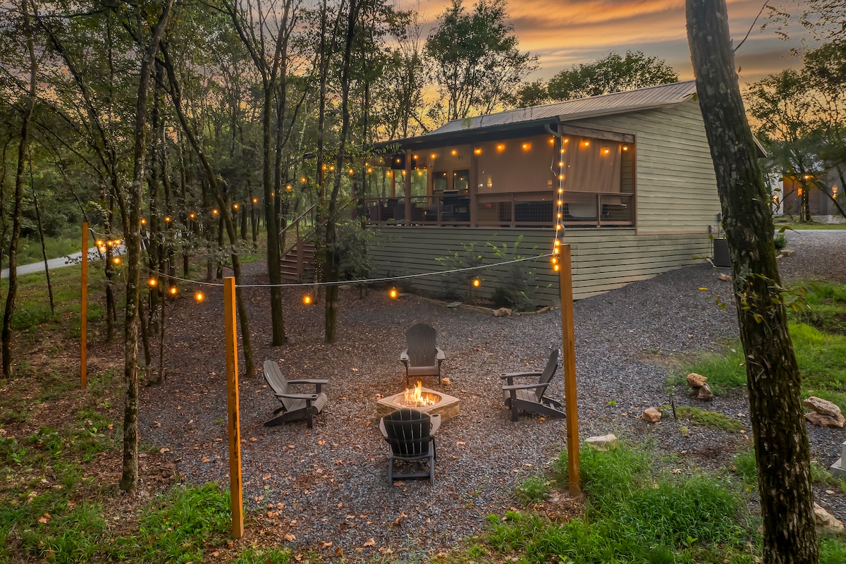✦ THE PHOENIX ✦ • True High-end luxury cabin on 3 secluded wooded acres • Sleeps 12 comfortably: 3 private king suites + stylish bunk room • 4 spa bathrooms with oversized marble showers • Private Pickleball Court nestled in the pines • Dual Gas Fireplaces (indoor + outdoor) for cozy vibes year-round • Heated Decks with Hot Tub – soak under the stars • Modern Game Room with Ping-pong • Fire Pit for s'mores, stories, and stargazing