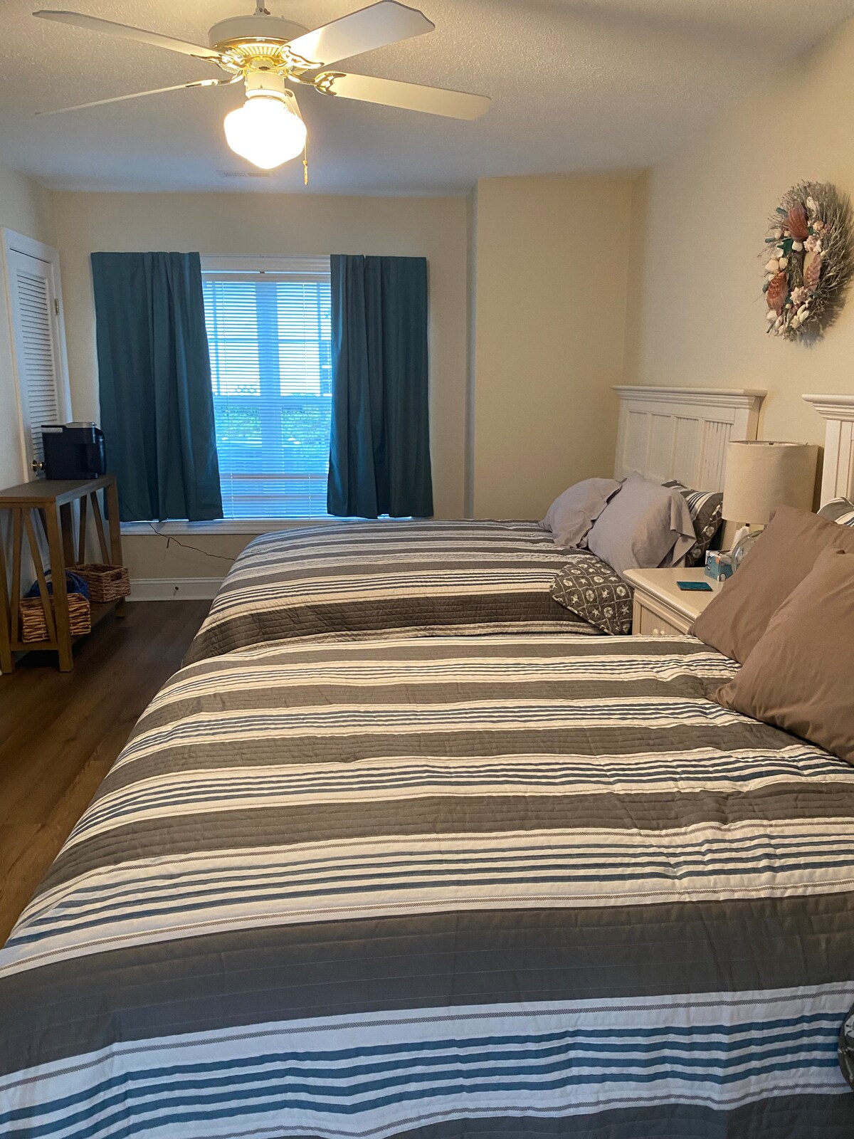 Schöne Wohnung, privater Raum. Offener und geräumiger Ess- und Wohnbereich. Gut ausgestattete Küche: Kühlschrank, voller Herd/Backofen, Mikrowelle, Toaster, Mixer, Kaffeemaschinen, Töpfe, Pfannen, Geschirr, Utensilien. Frühstückszubereitungsmöglichkeiten vorhanden. Medienraum mit Smart-TV, bequemen Sitzgelegenheiten und Computerarbeitsplatz. Großes, geräumiges Hauptschlafzimmer mit Kingsize-Bett ODER VERWANDELT SICH IN ZWEI EINZELBETTEN. Badezimmer angrenzend an Schlafzimmer, begehbare Dusche, keine Badewanne. Strände, die Innenstadt von Wilmington und die UNCW sind alle innerhalb einer 15-minütigen Autofahrt erreichbar.