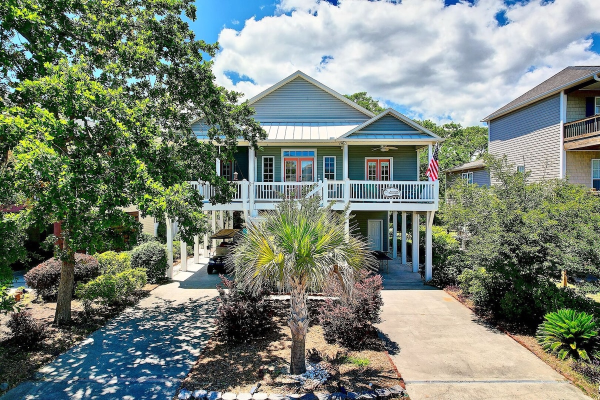 Familienfreundlich, haustierfreundlich gegen Gebühr, Whirlpool, brandneu im Jahr 2023! Willkommen bei Three Happy Crabs! Unser wunderbares Haus ist nur 4 Gehminuten entfernt, um deine Zehen in den Sand zu stecken! Genieße die Entspannung auf den geräumigen vorderen oder hinteren Terrassen, während du die Meeresbrise oder den Blick auf die Boote genießt, die auf dem Intercoastal Waterway vorbeifahren. Teilweise Meerblick von der vorderen Terrasse. Holden Beach ist ein Meeresschildkrötenschutzgebiet und gilt als einer der besten Familienstrände in den USA.
