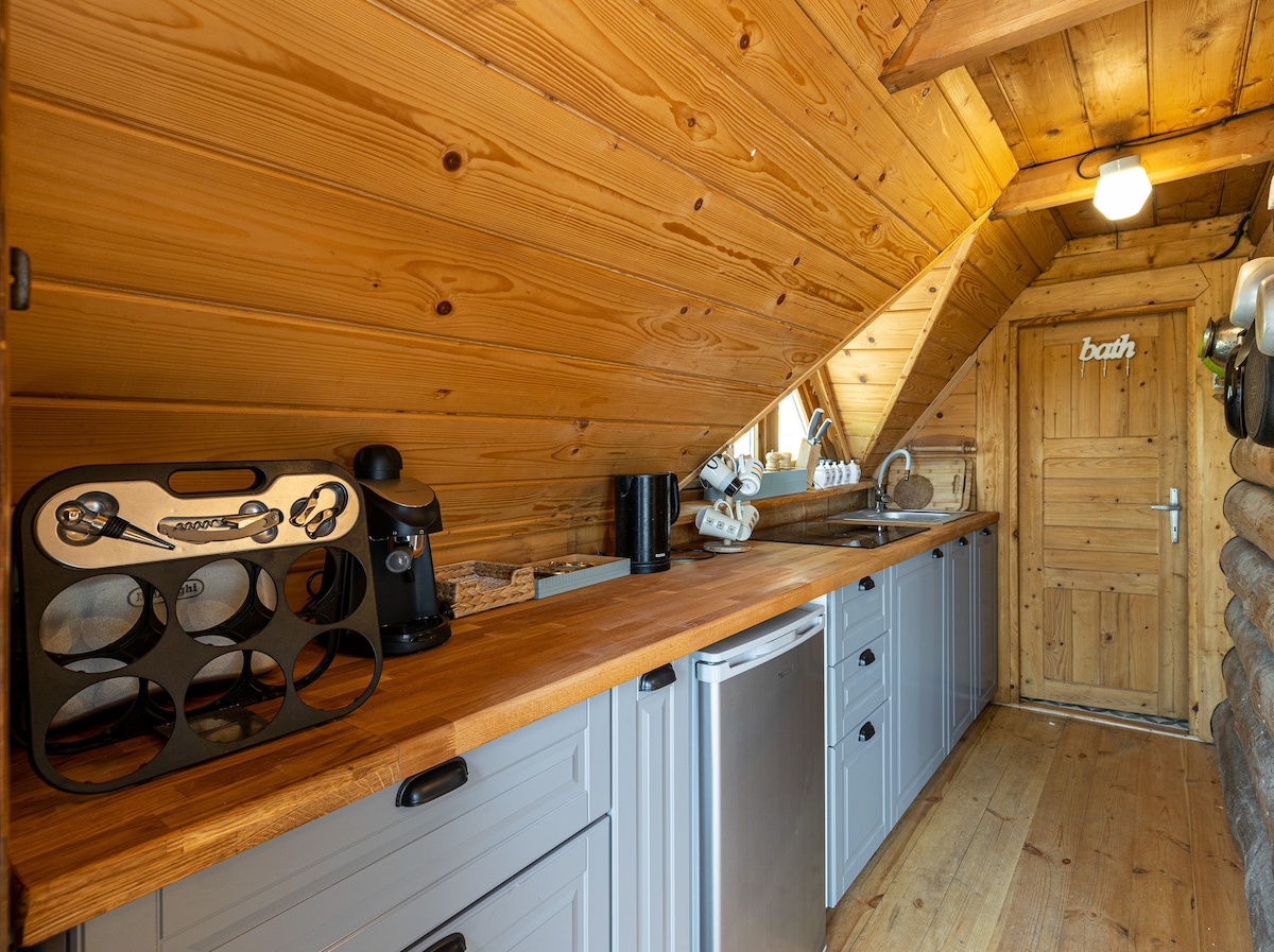 Alinówka zur Miete in den Insel Beskiden ist ein charmantes und gemütliches Holzhaus, das perfekt für Familien oder eine Gruppe von Freunden ist, die einen ruhigen Urlaub im Schoß der Natur suchen. Das Ferienhaus befindet sich auf einem Hügel, umgeben von Feldern und Bäumen. 30 Ar großes Grundstück, eingezäunt, mit Grillplatz und Camping am Feuer. Terrasse mit Blick auf die nahe gelegenen Berge, wo du deinen morgendlichen Kaffee genießen oder abends in einen Whirlpool mit der Beskiden-Landschaft springen kannst.