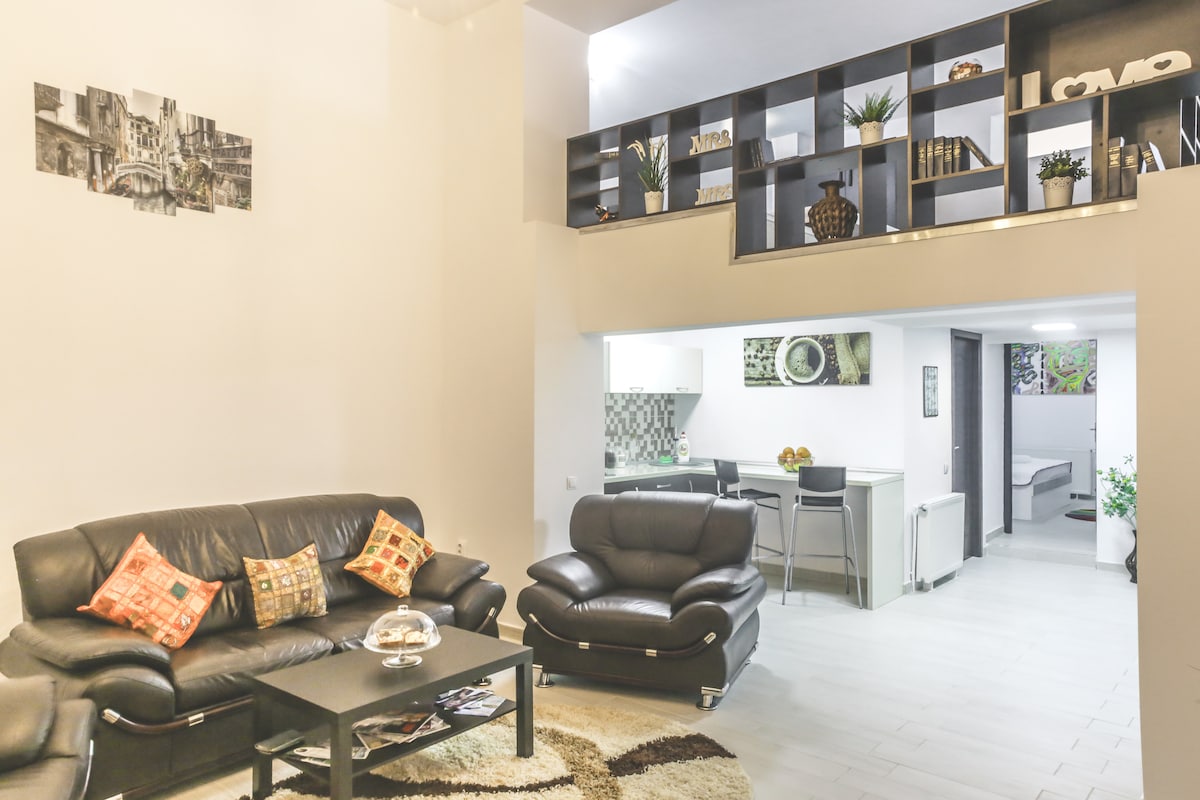Massage | Terrace | Electric Fireplace | High speed Wifi | Free Netflix HBO Prime | 3 Smart TVs Our apartment is situated right in the heart of Bucharest, at 4th floor, in a Art Deco building, with tall ceilings and large windows, designed, renovated and furnished from scratch to suit 5-Star travellers needs. We know the smallest details make all the difference that's why we left nothing to chance ...BOOK NOW and be part of our story!