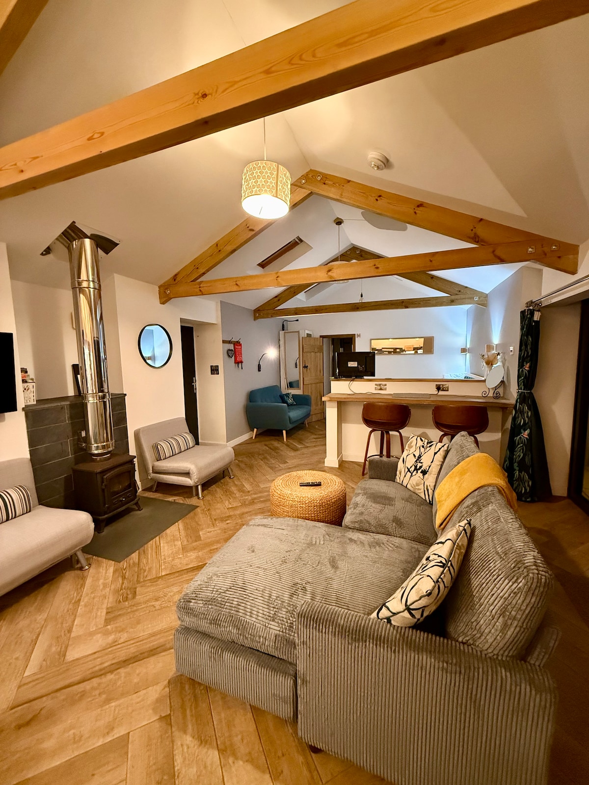 Diese im Jahr 2023 neu renovierte, umgebaute Scheune verfügt über eine Fußbodenheizung, einen 43-Zoll-Smart-TV (Lounge) und einen 23-Zoll-TV (Frühstücksbar), einen Holzofen, eine große Dusche, einen Geschirrspüler, WLAN, eine Waschmaschine, ein Kingsize-Bett, ein gemütliches Sofa (neu für 2026), einen Rasenbereich, eine Terrasse, eine Outdoor-Hängematte und Gartenmöbel. Eine kleine Ecke des Himmels auf unserem friedlichen privaten Bauernhof, nur 2,5 Meilen von Bude entfernt, Heimat unserer Hühnerherde, zwei Pferde, zwei Hunde und zwei Katzen. Whirlpool als optionales Extra verfügbar.