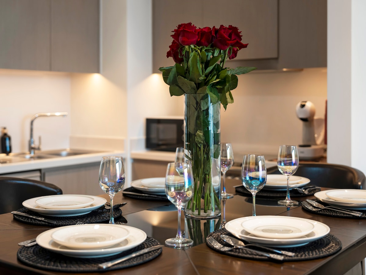 Unsere Wohnung liegt in der pulsierenden Innenstadt von Business Bay, nur wenige Minuten vom Burj Khalifa entfernt. Genieße die Skyline von Dubai und den Burj Khalifa von deinem Balkon. Genieße luxuriöse Annehmlichkeiten – kostenlosen Pool, Fitnessstudio, Parkplätze und einen malerischen Fitnesspfad. Erkunde zu Fuß oder mit dem Fahrrad Sehenswürdigkeiten wie Burj Khalifa, Dubai Mall und Dubai Fountain in Reichweite. Nahtlose Reisen, mit dem internationalen Flughafen Dubai nur 8,7 Meilen entfernt. Tauche ein in Luxus und Bequemlichkeit. Genieße die Silvesterfeuerwerksshow.