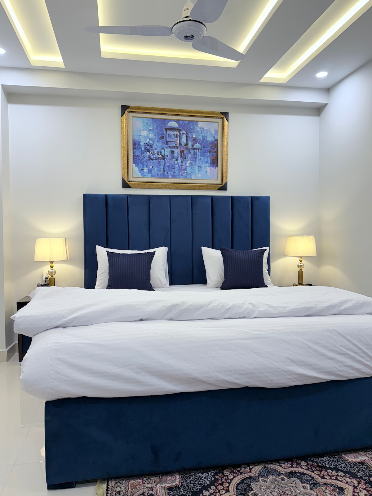 Welcome to your private & peaceful retreat at Sky Park One residences in the heart of Gulberg Islamabad — a sophisticated apartment blending elegance and comfort. Featuring two beautifully styled bedrooms along with a relaxing beautiful lounge, each with its own unique charm, the residence offers an exceptional stay. SMOKING IS STRICTLY PROHIBITED INSIDE THE APARTMENT. DOING SO WILL RESULT IN A RS.25000 FINE. PLEASE USE THE BALCONY FOR SMOKING PURPOSES