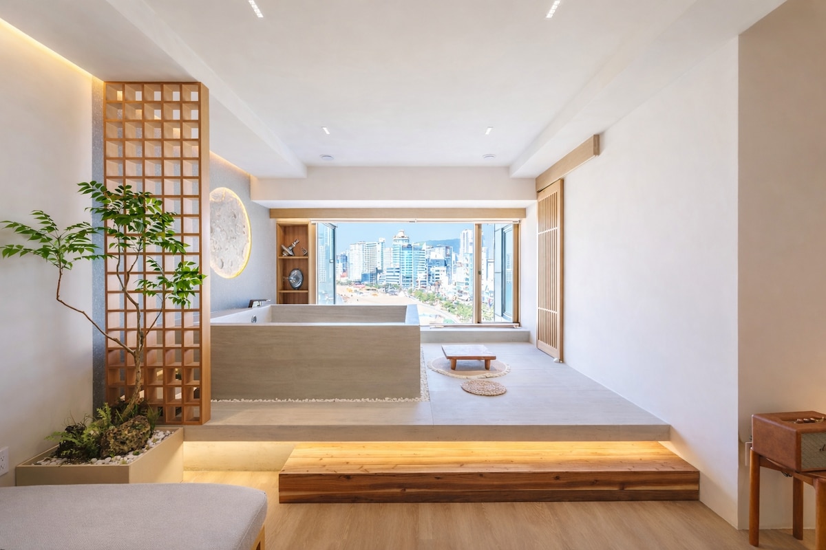[Yeon Stay Busan Seomyeon Filiale] 🎉Große ERÖFFNUNG im Dezember 2025 🎉 Beste Lage in Busan, Premium-Ryokan, komplette Villa - Kombination der Atmosphäre eines japanischen Ryokan und traditionellem koreanischem Ambiente, Neu veröffentlichte Premium-Privatunterkunft – • Privater Whirlpool • Tatami-Raum im traditionellen japanischen Stil • 3 Schlafzimmer, 5 Betten • Toilette, 2 Duschen • Weinbar und Küche • Selbstversorgung Induktion & Geschirr & Kochutensilien • Großer Tisch für 10 Personen • Standardanzahl der Personen: 4 Personen/Zusätzliche Person 20.000 KRW • Check-in 15:00 Uhr/Check-out 11:00 Uhr • Adresse: 168-459 Bujeon-dong, Jin-gu, Busan (3 Gehminuten vom Bahnhof Seomyeon entfernt) Yeonseo Stay Seomyeon Niederlassung, Für die besten Einrichtungen und absolute Privatsphäre Für ein Team pro Tag Es wird als dedizierter Raum betrieben :) ※ Telefonische Anfragen (9:00–22:00 Uhr)