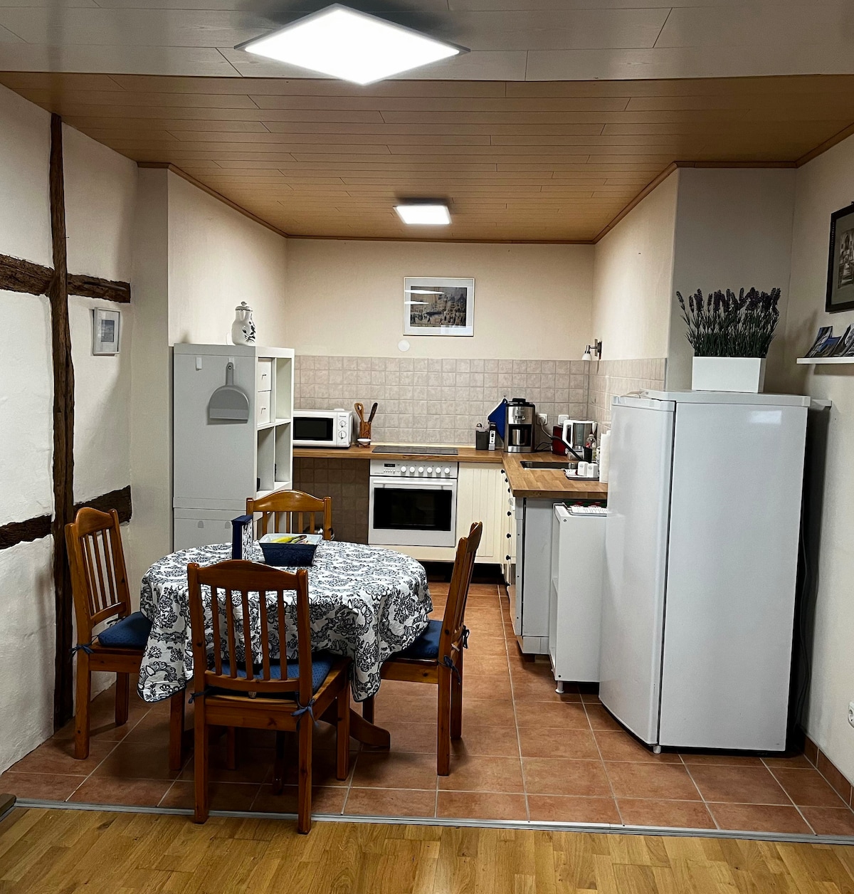Freundliche und neu renovierte Ferienwohnung ca. 70qm im DG, ruhige Feldrandlage, mitten in der Natur mit eigenem Balkon und kurzem Weg zum Freibad Maibach. Voll ausgestattete Wohnküche mit Essbereich inkl. Kaffeemaschine, Wasserkocher, Kühlschrank/Gefrierfach, Spülmaschine, Herd/ Ofen, Mikrowelle. Wohnzimmer mit Schlafcouch, 1 Schlafzimmer mit Doppelbett, Badezimmer mit WC/Dusche/ Badewanne und Fußbodenheizung. Inkl.Bettwäsche,Handtücher (je ein Satz pro Person) Nebenkosten und Endreinigung.