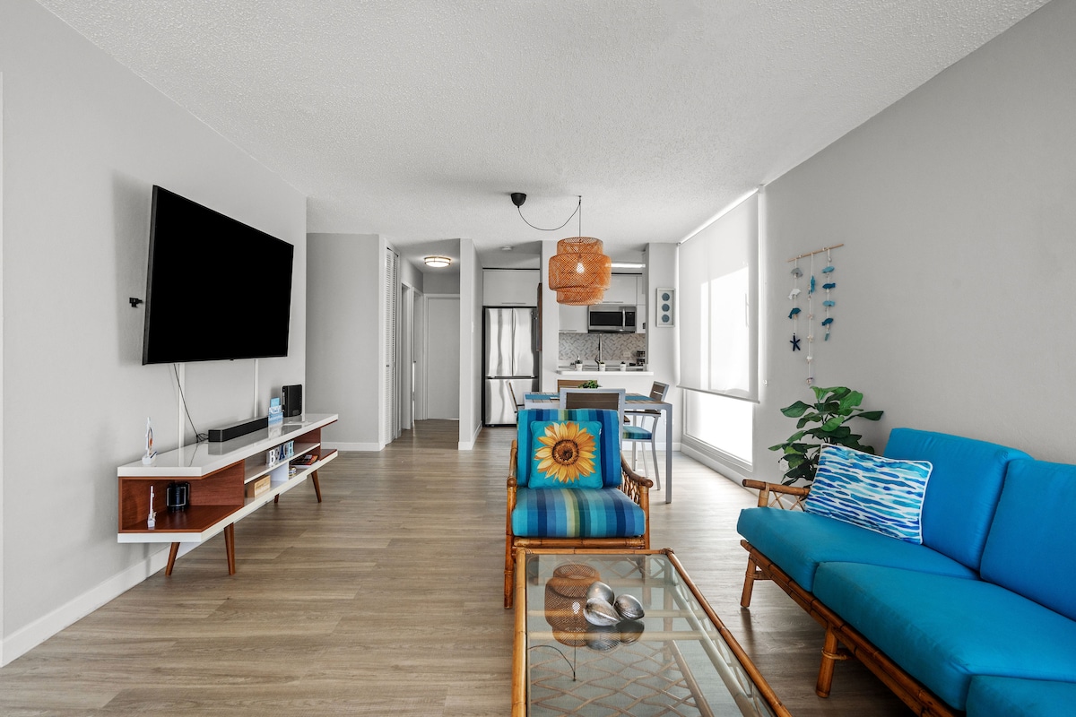 One bedroom condo, directly overlooking the Atlantic Ocean. The View is a tranquil space with breathtaking scenery. The perfect place to kick back and meditate, or explore the many adventures the island has to offer. Only steps away from the Marina and minutes from gorgeous beaches. This light-filled unit has a queen bed, air conditioner on the bedroom and dining area, full kitchen, and an on-site pool.