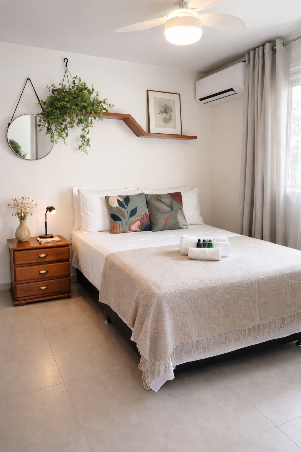 Genieße ein elegantes Erlebnis in dieser gut gelegenen Unterkunft. Unsere Suite befindet sich in der Nähe aller Annehmlichkeiten. Gastronomie, Freizeit, Einkaufsmöglichkeiten, Geldautomat, alles 10 Minuten von Praia do Forte und nur einen Schritt von den besten Attraktionen der Stadt entfernt. Wir befinden uns in einer Wohngegend, umgeben von Wald mit einer Promenade an der Lagune, wo Spaziergänge bei Sonnenuntergang das Highlight sind. Unsere Suite ist sehr weitläufig und unabhängig. Wir haben einen schönen Balkon in einem Garten mit einer Dusche.