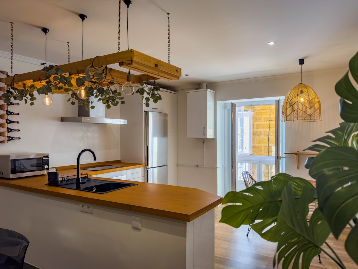 This 2nd-floor apartment is situated in a newly refurbished 19th century house, which is located only 3 minutes either from the cathedral or from the central market. Everything in the historic centre of Cadiz is within a footwalk distance away from the apartment. The building is located in a pedestrian area and therefore quiet and peaceful. The bedrooms open to a patio of a 18th century convent and are even more quiet. From the roof-top you have a marvelous view over the atlantic ocean.