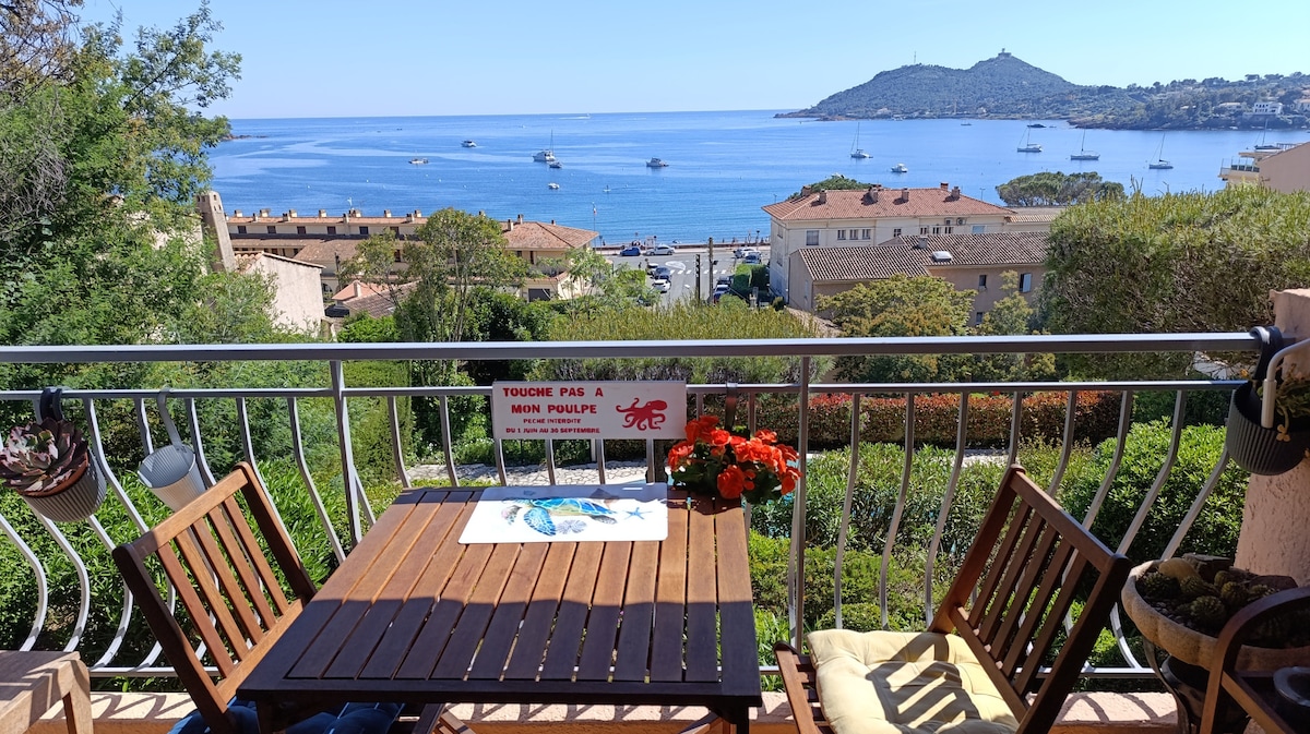 Agay, direkt am Meer von Saint Raphaël, zwischen St. Tropez und Cannes, genießen Sie einen ruhigen Urlaub mit Panoramablick auf das Meer und den Strand, der weniger als 5 Minuten zu Fuß entfernt ist Sehr komfortable Wohnung, mit atemberaubendem Meerblick und großer Sonnenterrasse, in einer gesicherten Residenz mit Pool (25 x 10, geöffnet von Mai bis Ende September) und Tennisplatz. 2 km von der Bucht von Agay und ihren Geschäften (Bäckerei, Supermarkt, Restaurants, Apotheke,...), 5 km von den Zugängen im Massif de l 'Estérel entfernt