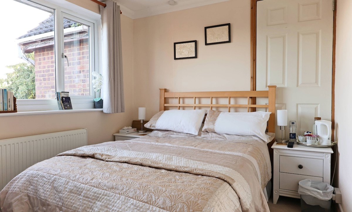 Wir wohnen in einem viktorianischen Stadthaus und dein Doppelzimmer in unserem Haus ist hell und luftig mit einem privaten Duschraum (keine Badewanne und kein eigenes Bad, aber nur ein paar Schritte entfernt über einen kleinen Treppenabsatz). Es ist nur fünf Gehminuten vom Stadtzentrum mit seiner großen Auswahl an Geschäften, Pubs, Restaurants usw. entfernt. Öffentliche Verkehrsmittel sind ebenfalls in der Nähe und wir sind nur zwei Gehminuten vom örtlichen Waitrose-Laden entfernt. Kontinentales Frühstück wird bereitgestellt.