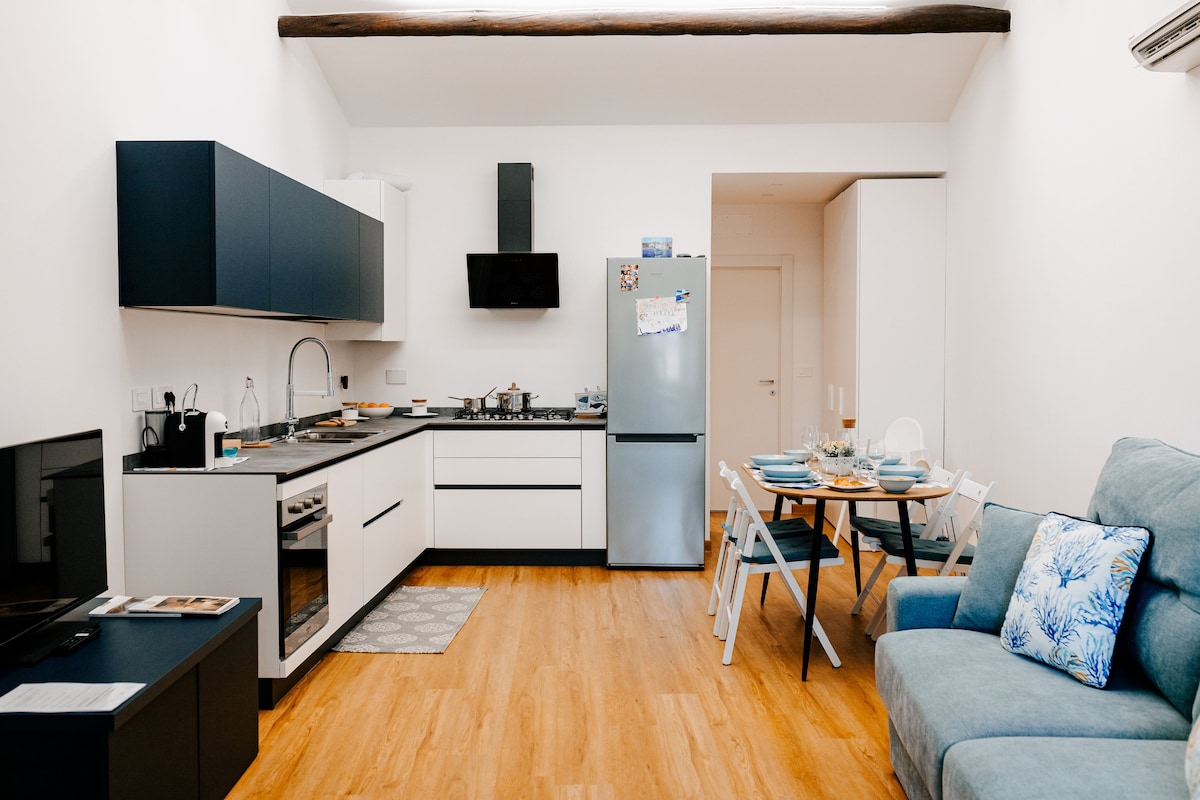 Camogli Dream ist eine frisch renovierte Wohnung, die mit Liebe zum Detail gestaltet wurde. Der Blick aus den drei Fenstern im Wohnzimmer mit Blick auf die Kirche, Punta Chiappa und „Passeggiata“ (die Hauptstraße) ist atemberaubend: ein postkartenreifes Panorama! Die Wohnung hat zwei Etagen: Im ersten Stock befindet sich ein Panorama-Wohnzimmer, die Küche, das Badezimmer und ein Schlafzimmer mit zwei Betten. Über die Wendeltreppe erreichst du die Hochzeitssuite und das zweite Badezimmer.