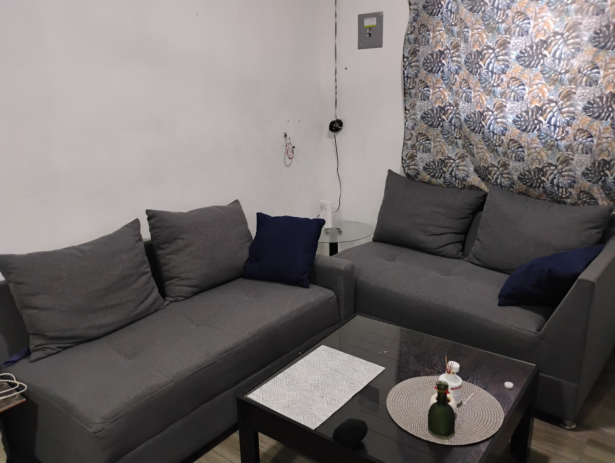 Lass dich in einem separaten, komfortablen und sicheren Raum im Garten unseres Hauses verwöhnen. Dies ist eine von zwei privaten Wohnungen, die sich den Pool teilen. Genieße den Gesang der Vögel, ein gutes Buch oder ein Bad. Nur 900 m von der Esplanade und 1,3 km vom historischen Zentrum entfernt. Wenn du mit der Absicht kommst, $ zu sparen, findest du zwei Supermärkte ein paar Schritte entfernt. Wenn du ein Auto mitbringst, kannst du in der Unterkunft bleiben. Wir sind zwischen Colosio und López Mateos, wo du den Bus nehmen kannst.