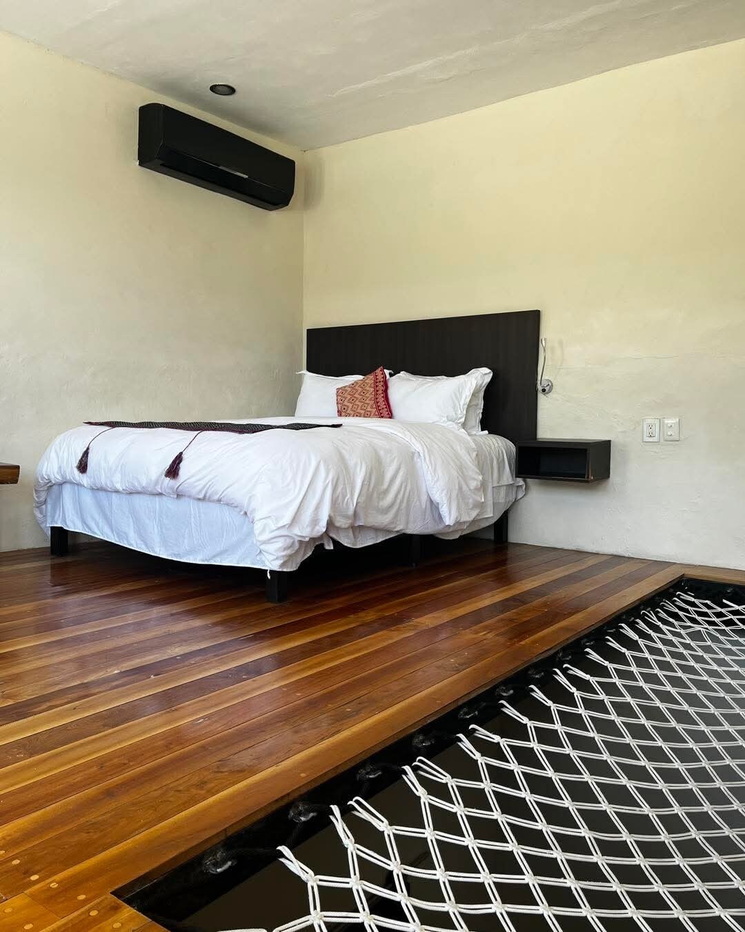 Genieße Luxus und Komfort in der Jade Real Suite, unserer geräumigsten Option, mit einem Kingsize-Bett und einer stilvollen Atmosphäre. Ideal für diejenigen, die ein erstklassiges Erlebnis suchen, bietet diese Suite einzigartige Details und exklusive Annehmlichkeiten wie kostenloses WLAN und Zugang zu unserem privaten Pool. Entspanne dich und lass dich im Herzen von Campeche verwöhnen, umgeben von Charme und Komfort. Buche jetzt und erlebe ein unvergessliches Erlebnis im Casa Jade!