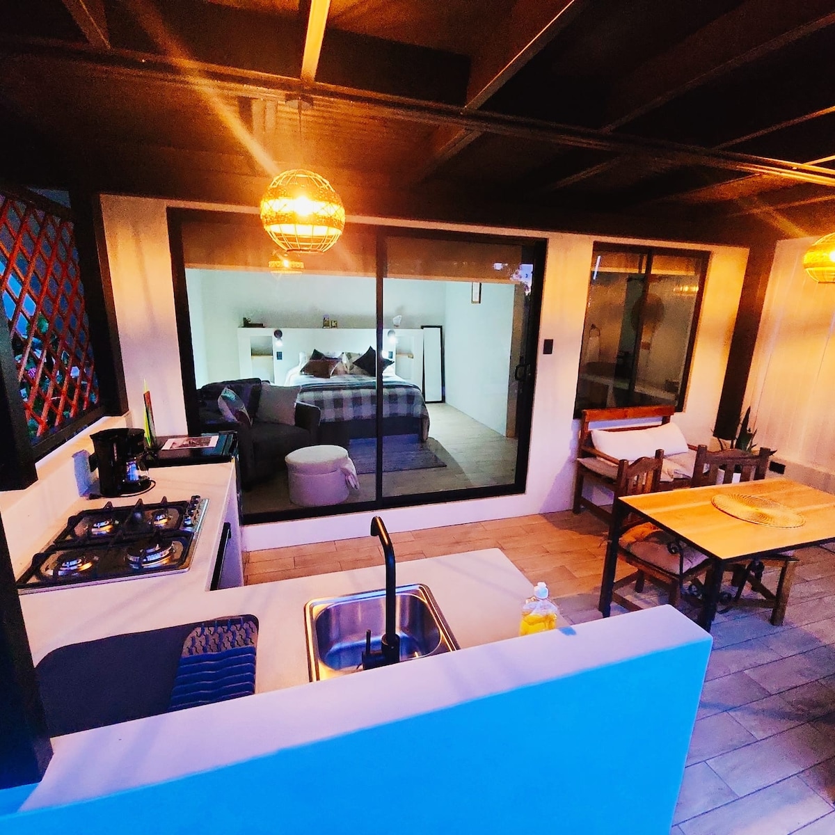 Eingebettet in die üppigen Hügel von Chirripó liegt dieses magische Anwesen am Fluss genau dort, wo zwei Flüsse aufeinandertreffen. Auf fast einem Hektar Land gelegen, lädt es dich ein, frei zu wandern – erkunde Naturpfade, entdecke kleine natürliche Pools und entspanne dich an friedlichen Orten entlang der Flussufer. Diese Casita ist ein gemütlicher, privater, liebevoll gestalteter Raum mit Bettwäsche und Decken aus Baumwolle für maximalen Komfort. Es ist so konzipiert, dass du problemlos schlafen, kochen und arbeiten kannst – perfekt für kurze und längere Aufenthalte.