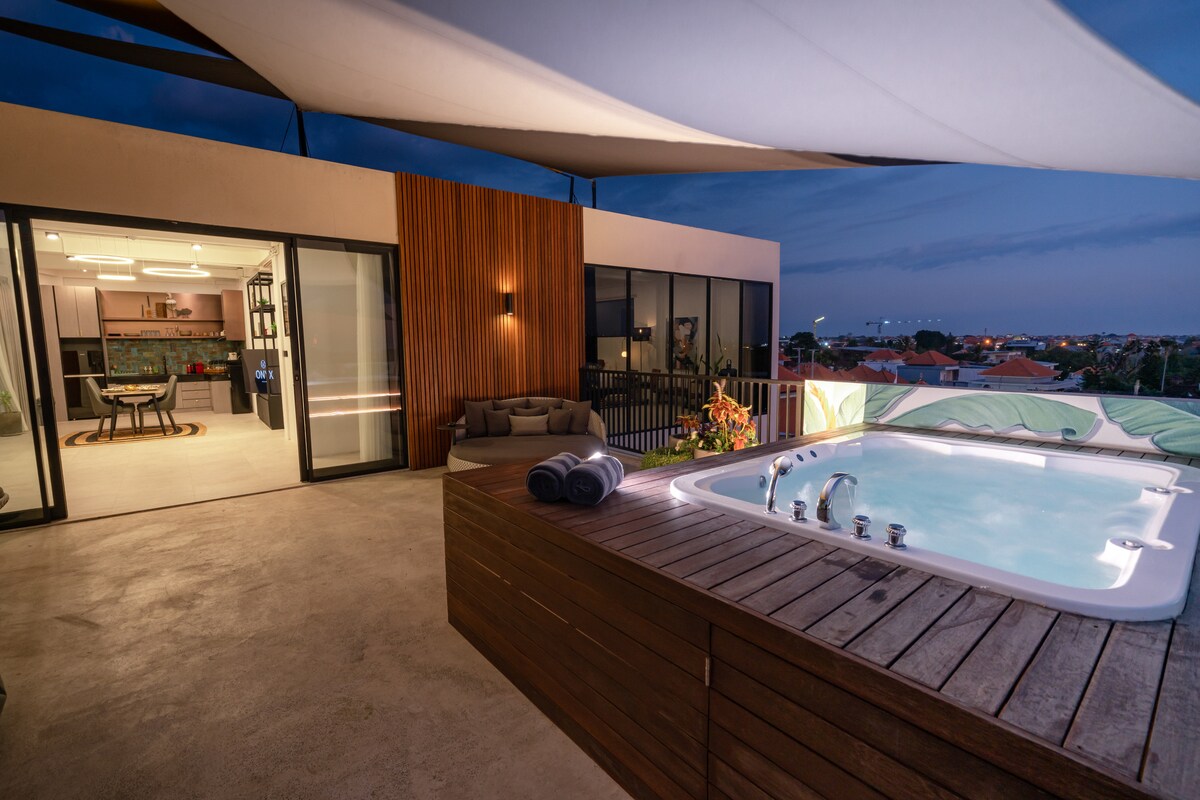 20 Suites Umalas ist ein moderner Komplex in der ruhigen Gegend von Umalas, strategisch gelegen zwischen Seminyak und Canggu für einen einfachen Zugang zu Balis besten Orten. Es verfügt über 16 Suiten mit einem Schlafzimmer und 4 Suiten mit zwei Schlafzimmern, jeweils mit einem privaten Wohnzimmer, Küchenbereich, Schlafzimmer, Safe und schnellem WLAN. Die Gäste genießen einen Gemeinschaftspool, Sonnenliegen, eine geräumige Garage, tägliche Reinigung, 24-Stunden-Sicherheitsdienst und Rezeptionsservice. Dies macht es zu einer idealen Wahl für einen erholsamen oder längeren Aufenthalt auf Bali.