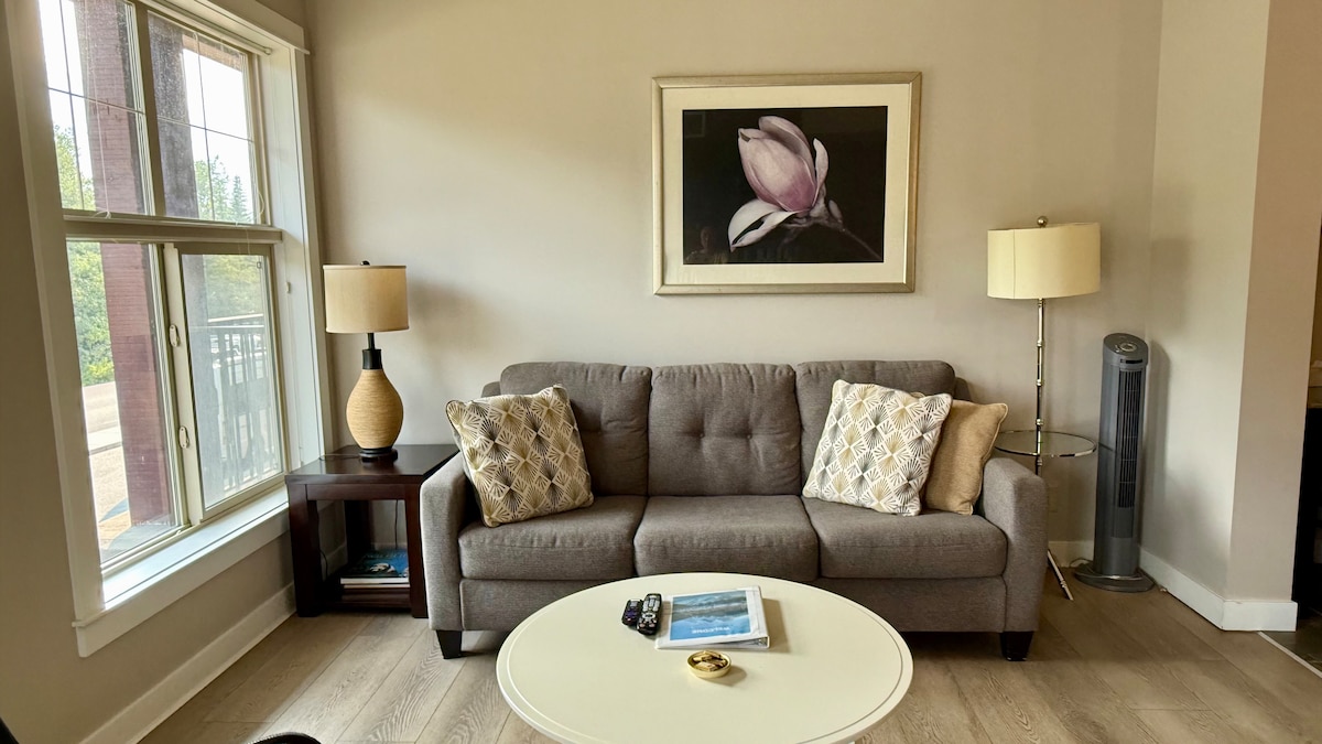 Willkommen in deinem luxuriösen Rückzugsort in den Bergen! Diese brandneue Suite mit Kingsize-Doppelbett bietet Platz für bis zu 4 Gäste. Nur 10 Gehminuten vom Stadtzentrum entfernt, verfügt die Suite über ein Kingsize-Bett, ein ausziehbares Schlafsofa, ein Badezimmer, eine voll ausgestattete moderne Küche, Flachbildfernseher, eine Waschmaschine/Trockner sowie luxuriöse Bettwäsche und Handtücher. Die Suite verfügt über Zugang zu einem Whirlpool, einem Fitnessraum und einem Tiefgaragenstellplatz. Kurzzeitmietlizenz: RES-09776
