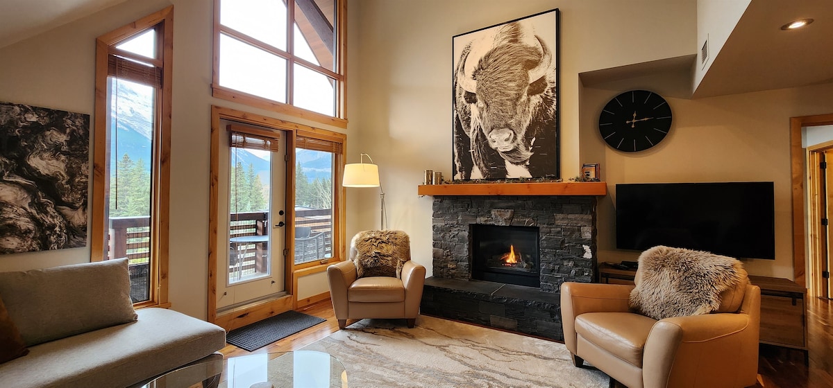 Willkommen in deinem ruhigen und stilvollen Canmore-Urlaub! Diese luxuriöse Eigentumswohnung befindet sich nur einen 10-minütigen Spaziergang vom Stadtzentrum entfernt, sodass Geschäfte, Restaurants und Wanderwege direkt vor der Haustüre liegen. Entspanne dich am gemütlichen Steinkamin, versinke in ein weiches Kingsize-Bett oder beherberge zusätzliche Gäste auf dem hochwertigen Schlafsofa. Genieße einen hellen, luftigen Wohnbereich, eine voll ausgestattete Küche, eine Waschküche in der Suite, kostenlose Parkplätze und 1 GB High-Speed-WLAN. Ideal für Abenteuer oder Entspannung in den Rockies.