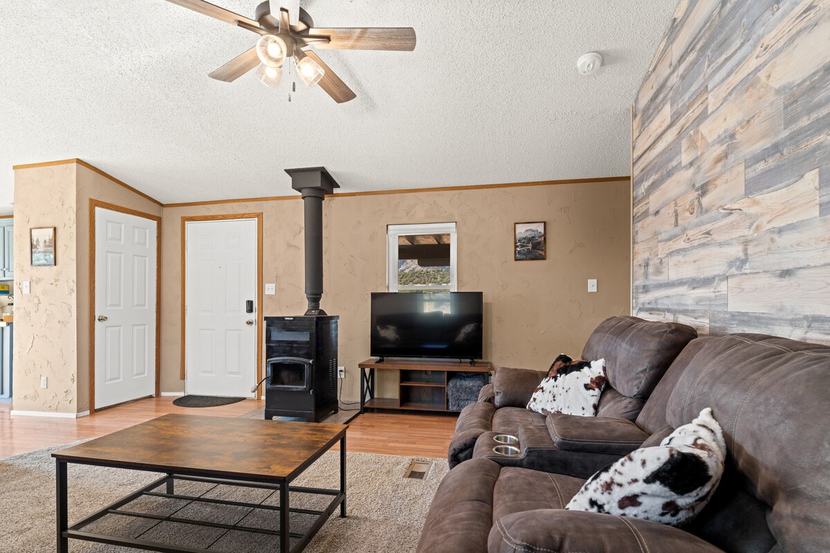 Unser Berghaus ist ideal für Familientreffen, Freunde und Kinder jeden Alters! Diese einzigartige Hütte wurde von einem einheimischen Holzfäller gebaut und hat eine maßgefertigte Schnitzerei von Paul Bunyan im Wohnzimmer. Sie befindet sich am südlichen Ende der Stadt, etwa 5 Minuten von der historischen Innenstadt entfernt. Rafting, Wandern, Seilrutschen, die Royal Gorge sind alle nur wenige Minuten von diesem komfortablen Aufenthalt entfernt. Vollständig eingezäunt im Hinterhof, also stelle sicher, dass du deine gut erzogenen Hunde für deinen Aufenthalt bei uns einpackst. Bis bald!