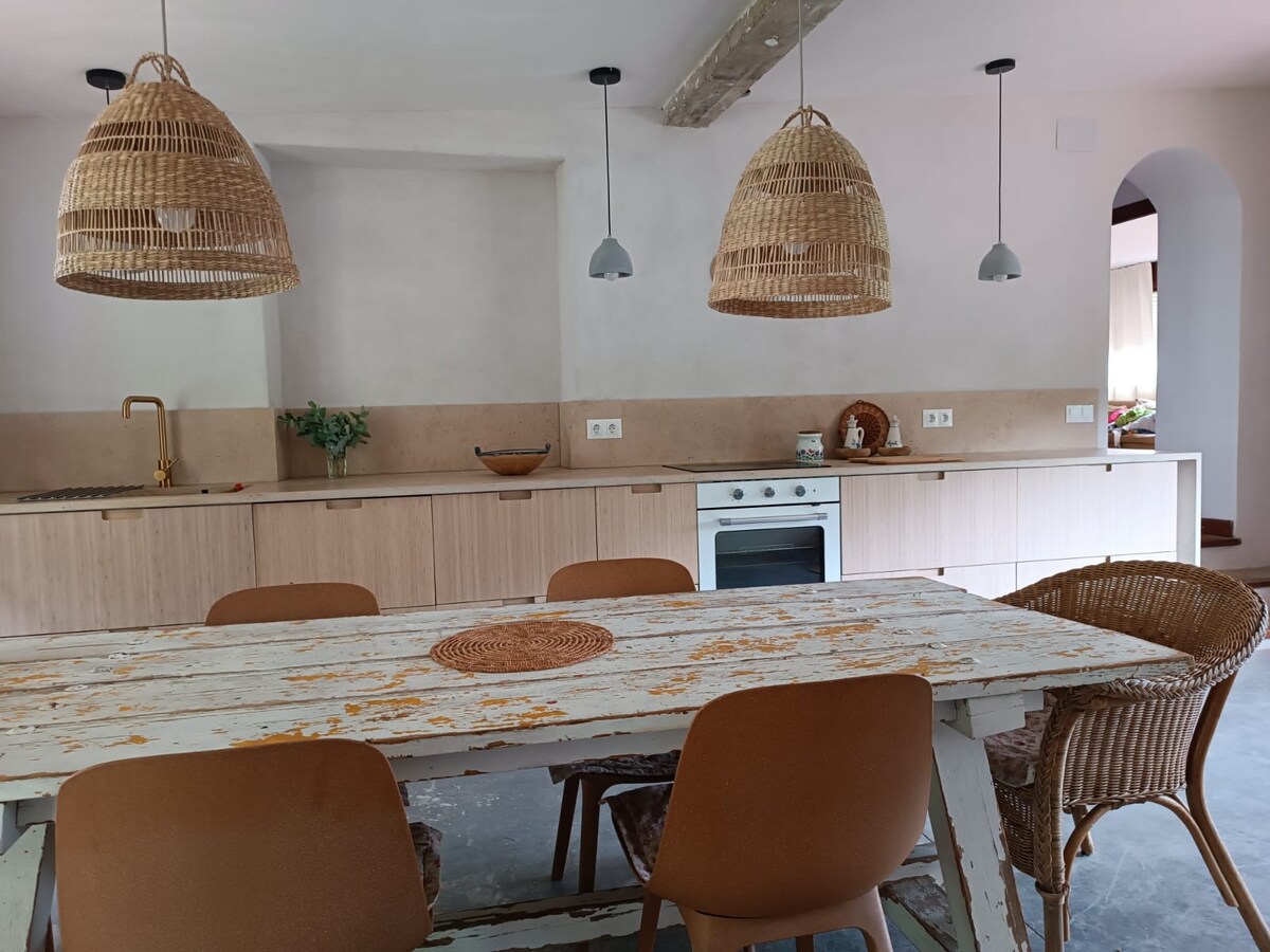 Haus aus den 80er Jahren liebevoll renoviert, ideal für große Familien oder kleine Gruppen von Freunden. Mit einem Garten, der es umgibt, um verschiedene Räume für einen Grill zu schaffen, ein Buch unter der Palme zu lesen, durch den Obstgarten zu schlendern oder zu sonnen. 400 m vom Strand La Ria entfernt, in der Verbindung der Ria mit dem Meer. Je nach Ebbe findest du einen felsigen Strand mit etwas Sand, je nach Wintersee oder bei Flut, die vom Steg aus baden und Krabben an den Felsen nehmen.