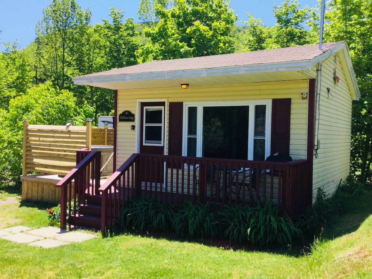 Entschleunige und entdecke einen verzauberten Ort voller Wärme, Charme und unverwechselbarer Annehmlichkeiten. Schicke Hütte, auf drei Seiten von Wäldern umgeben, mit spektakulärem Blick auf das Cape Breton Highlands. Direkt am berühmten Cabot Trail, nur wenige Blocks vom Meer entfernt, aber immer noch in der Stadt, genieße Ruhe und Bequemlichkeit. Holzbeheizter Whirlpool und Pizzaofen. (Holz wird bereitgestellt) Fünf Gehminuten vom schönen Restaurant und Bar L'abri, nur ein wenig weiter vom Musiklokal The Doryman entfernt.