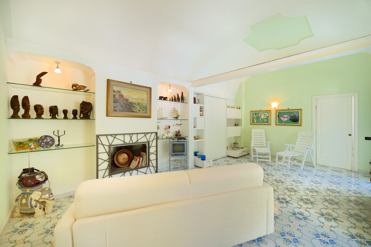 Dieses kleine Haus ist unser Zuhause, wenn wir nicht arbeiten, und wir lieben es. Es ist so abgelegen, wie man es in Praiano sein kann, in 2,5 Hektar terrassiertem Olivenhain und weit weg von anderen Häusern. Alles, was du vom Haus aus siehst, ist das Meer. Ein Ort zum Verlieben!