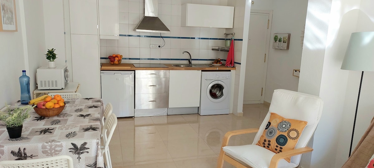 Maravilloso apartamento en Carboneras. Dos amplios dormitorios con cuarto de baño y salon-comedor con cocina integrada. El apartamento está equipado con altos estándares y diseñado para hacer de su estancia una bonita experiencia. Se encuentra a 200 m de la playa. Wonderful apartment in Carboneras. Two large bedrooms with bathroom and open-concpet living room / kitchen. It is equipped to high standards and designed to make your stay a beautiful experience. Just 200 m away from the beach.