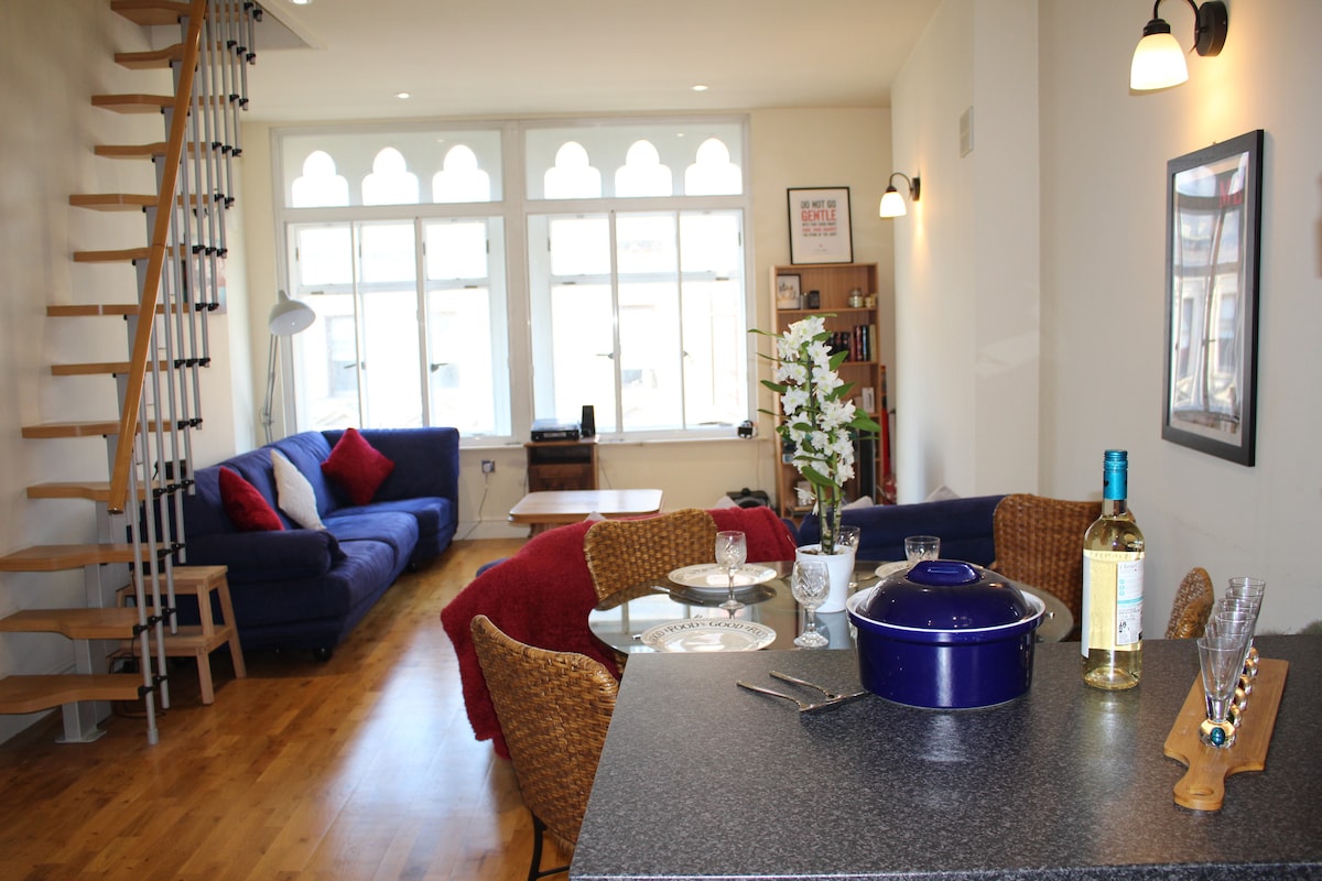 Schlendere von einem schicken, renovierten Stadthaus ins Stadtzentrum