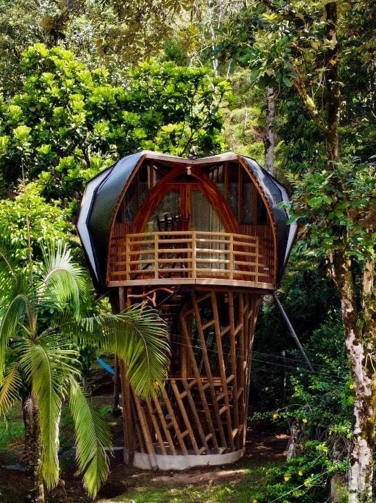 Cabaña elevada para parejas, ubicada entre el guadual y rodeada de naturaleza. Su diseño tipo casa en los árboles ofrece un ambiente acogedor y privado. Cuenta con cama doble, baño privado, televisor y un balcón ideal para disfrutar de la tranquilidad y la belleza del entorno natural.