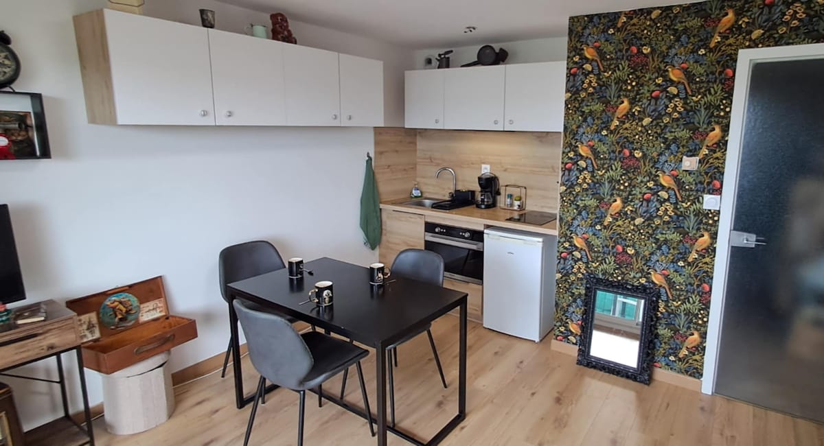 „Belles de Bretagne“ bietet dir ein 33 m2 großes Studio im 2. Stock mit Aufzug. Komfortabel eingerichtet: Wohn-/Esszimmer mit einem KLAPPBAREN Bett (1 x 160 cm, lang 200 cm), TV. Küche (Geschirrspüler, Elektroherd, Kühlschrank) Wasserkocher, elektrische Kaffeemaschine, Espressomaschine). Dusche/WC. Waschmaschine. Balkon. Schöner Meerblick. Parkplatz. Bett- und Badwäsche extra. Die Reinigung wird von dir durchgeführt. Vergiss nicht, deine Buchung zu ergänzen, wenn du mit deinem Haustier kommst.
