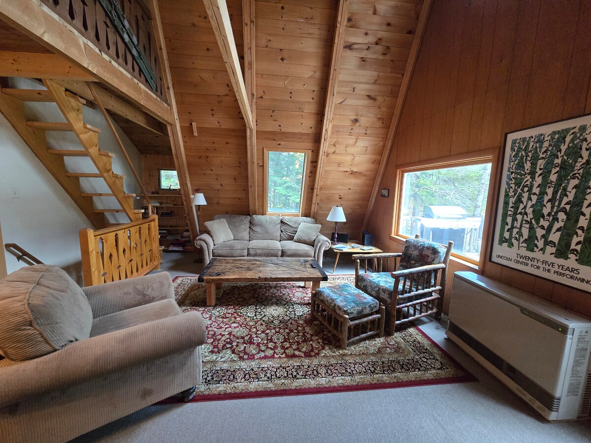 Genieße deine eigene persönliche A-Rahmen-Hütte, die in den Bergen des Carrabassett Valley versteckt ist. Das Maine Frame ist ein privater Kurzurlaubsort mit einfachem Zugang zum Sugarloaf Ski Resort, zahlreichen Wanderwegen, einzigartigen lokalen Restaurants und mehreren Seen und Flüssen zum Kajakfahren in der Western Mountains & Lakes Region von Maine. Die Hütte verfügt über Highspeed-Internetzugang zum Streamen von Filmen in regnerischen Nächten, schnellen Zugang zu Kingfield für Lebensmittel und Vorräte und eine große Holzterrasse zum Entspannen und Unterhalten zu Hause.