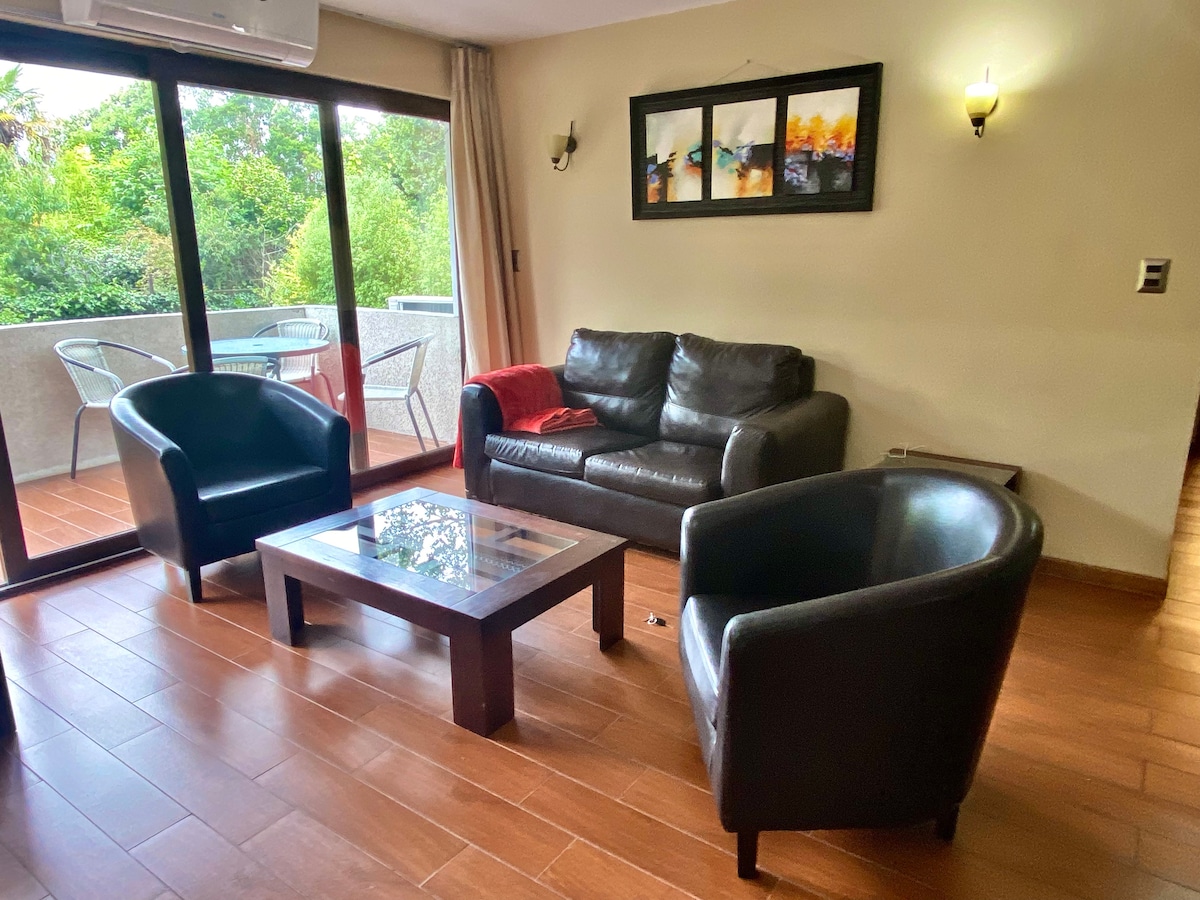 Studio-Apartment in der Nähe des Zentrums. Komplett möbliert, mit Thermopanel-Fenstern und Vulkanblick. Die Wohnung beinhaltet: Doppelbett Ausgestattete amerikanische Küche Große möblierte Terrasse Elektrischer Grill Eine elektrische Heizung Privatparkplatz. * Desinfiziert mit quaternärem Ammonium. Weitere Dienstleistungen: Außenpool, Fitnessraum, Sauna, Spielzimmer, Quincho und Wäscherei.