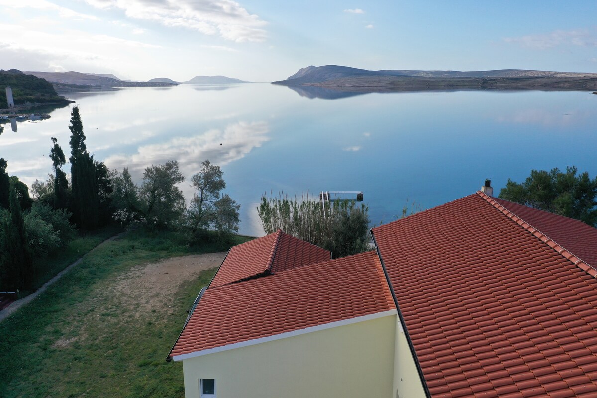 Auf steilen Felsen, 30 m über dem Meeresspiegel, gelegen, ist dieses idyllische Studio ein perfekter Kurzurlaub für einen dringend benötigten Urlaub. Umgeben von einem Vegetationsreservat von Dubrava-Hanzine, bietet sie ein luxuriöses Erlebnis – zum Beispiel den atemberaubenden Blick auf die Pager Bucht und die Bergkette von Velebit. Der Strand Rozin Bok liegt 50 m von der Wohnung entfernt. Parkplatz, Klimaanlage, Außengrill und Außensolardusche inklusive. SUP und Kajak stehen während des Aufenthalts in der Wohnung zur Verfügung.