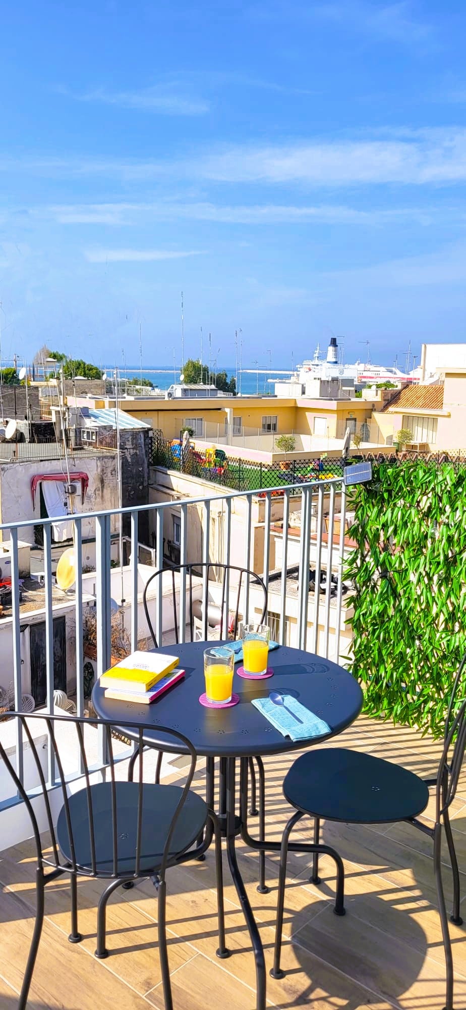 Eingebettet in ein belebtes Viertel, nur wenige Schritte von der Strandpromenade und den Stränden entfernt, bietet unsere gemütliche Unterkunft erstklassigen Komfort mit Klimaanlage, einem weichen Kingsize-Bett, einer voll ausgestatteten Küche und einem hochwertigen, geräumigen Badezimmer. Zur Unterhaltung kannst du dich mit einem 42-Zoll-Smart-TV mit Netflix und anderen Streaming-Optionen zurücklehnen, die alle durch rasend schnelles 75-Mbit/s-Internet unterstützt werden. Mit kostenlosen Parkplätzen und einem eigenen Balkon ist unsere Unterkunft die erste Wahl für einen wirklich erholsamen Aufenthalt in Trani.