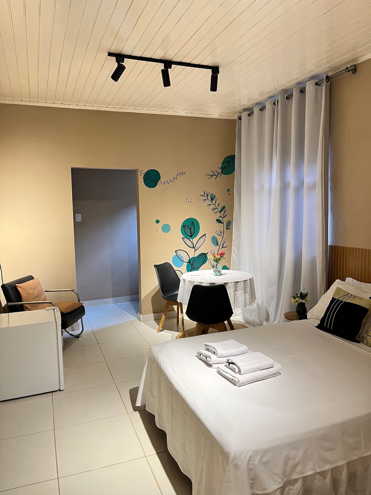 Ganze Wohnung in einem typischen Kolonialhaus von Ouro Preto, im historischen Zentrum, ausgezeichnete Lage, nur 150 m von der Pca Tiradentes entfernt, im 1. Stock (eine Treppe), mit einer Fläche von 56 m2 plus einer Terrasse von 36 m2. Die Wohnung verfügt über 1 Suite, 1 Schlafzimmer, 1 Badezimmer, eine private Terrasse, Super-Kingsize-Bett oder Einzelbett 1 m, Bettwäsche 200 Fäden, Klimaanlage warm und kalt, Haartrockner, Smart-TV, Tisch mit Hockern, Mini-Küche mit Spüle, Mikrowelle, Air Fryer, elektrische Kaffeemaschine und Minibar.