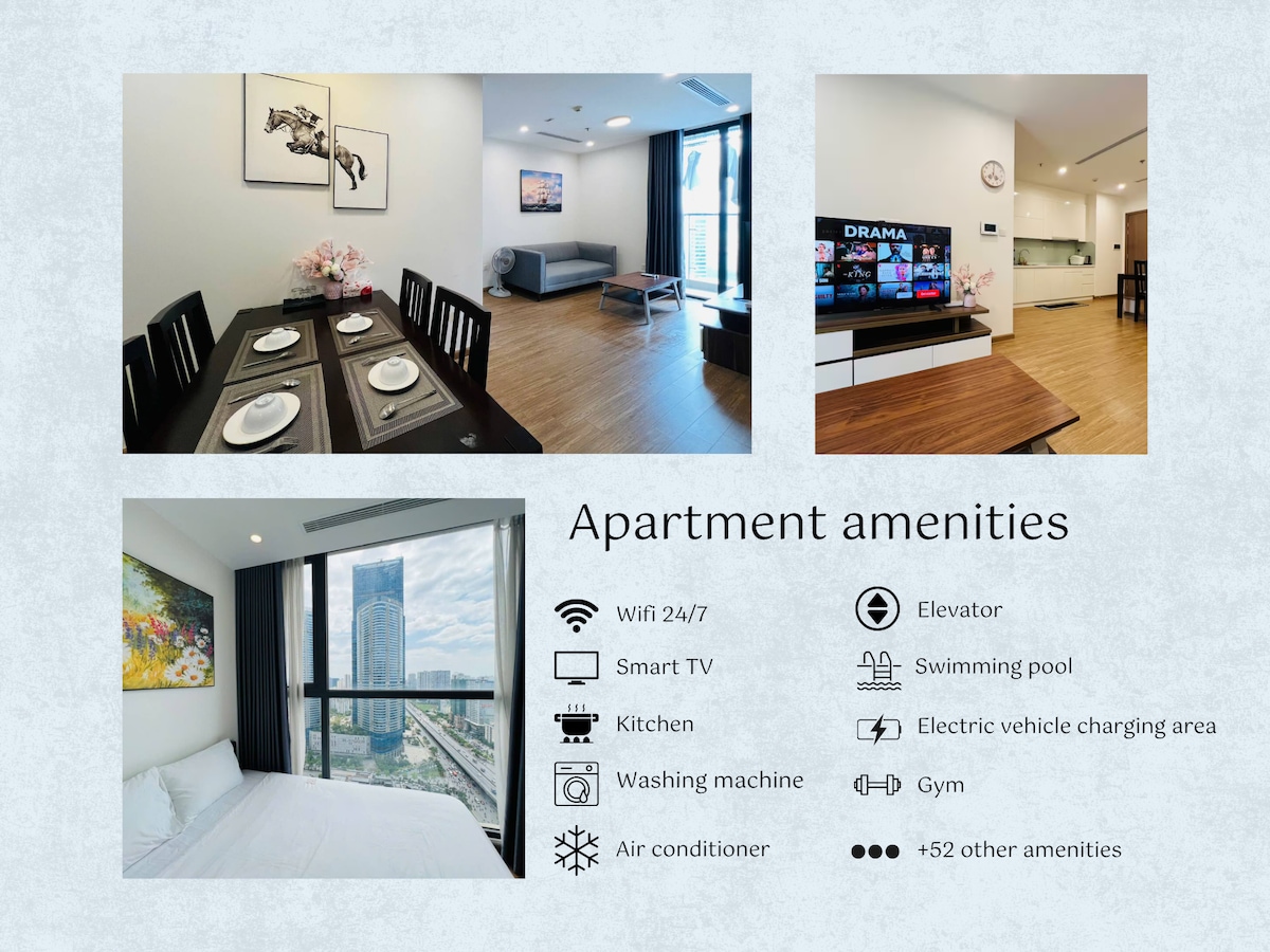 Die Wohnung befindet sich in Vinhomes Skylake S2, einem luxuriösen Wohnkomplex in Hanoi Farm Hung. Im Inneren des Gebäudes befinden sich im ersten Stock verschiedene Restaurants, Supermärkte, Cafés, Kinos und Einkaufszentren. Es ist bequem, von der Wohnung zum Flughafen zu gelangen, und man kann in 3 Minuten zu Fuß in Koreatown ankommen.
