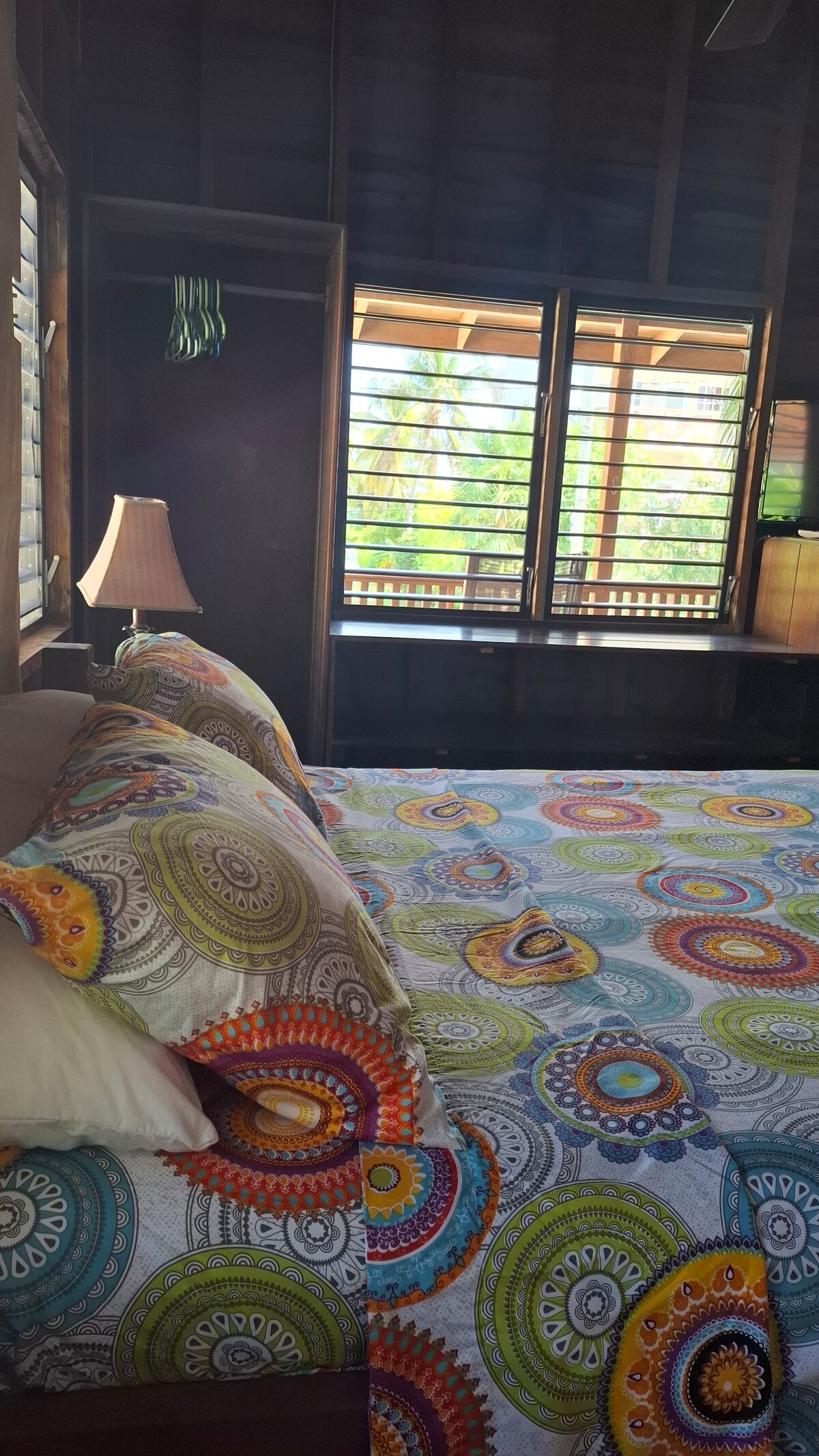 This Belize Vacation Cottage is tucked away just outside of the village. Walk to the sea, located at the end of our street, or head to the village, a 10 min walk along the beach. This cottage is an excellent budget friendly option for singles, couples, friends or small families. Aqua Villas Cottage A has queen loft bed and single bed in the livingroom with Smart TV.