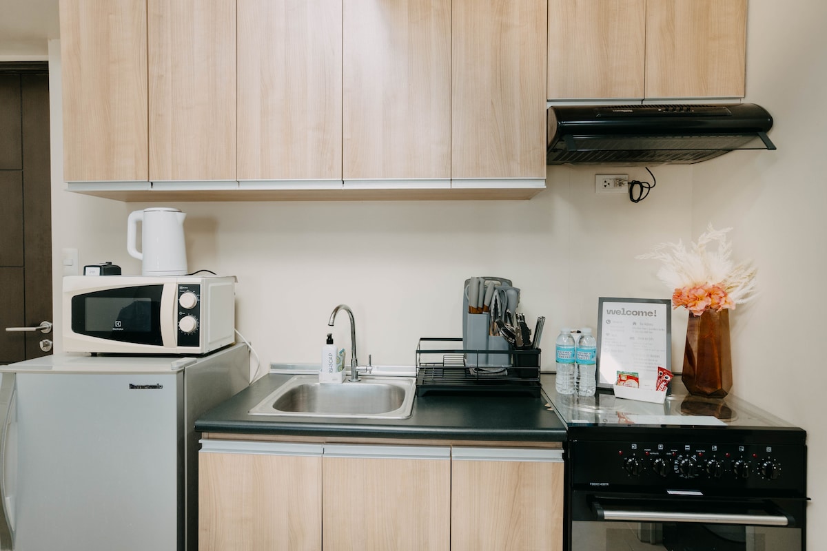 Ein helles, mediterran inspiriertes Studio in Uptown Cebus Baseline Prestige, das für einfache Stadttage und Inselausflüge konzipiert wurde. Wache in weichen Küstentönen, arbeite an schnellen Fasern und spaziere dann zu Cafés, Einkaufszentren und Krankenhäusern, die nur Minuten entfernt sind. Hotelpolierter Komfort mit praktischen Akzenten: gefiltertes Trinkwasser, heiße Dusche und eine voll ausgestattete Küchenzeile.