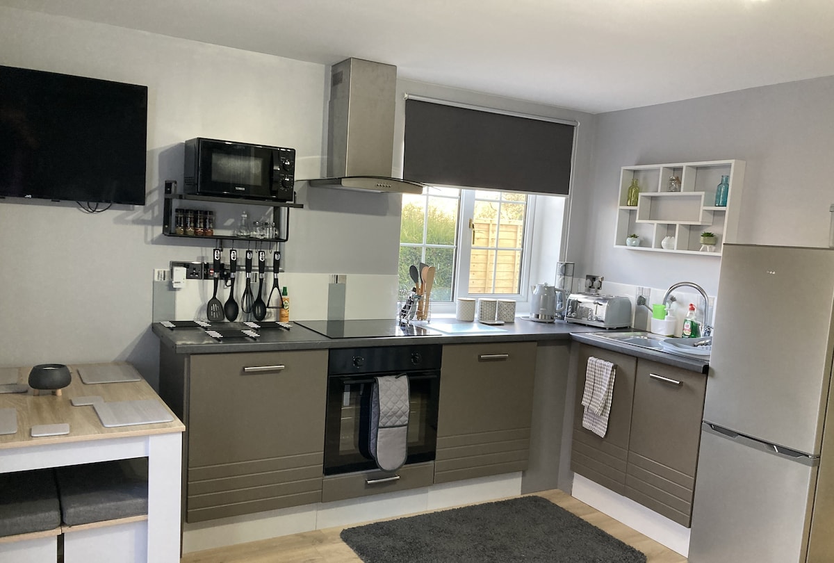 Entfliehe unserem luxuriösen Airbnb in Llanrhystud auf einem bewirtschafteten Bauernhof am Meer. Genieße ein Super-Kingsize-Bett, einen 55-Zoll-Fernseher und ein freistehendes Bad im geräumigen Schlafzimmer. Entspanne dich am Holzofen oder entspanne dich in deinem privaten Whirlpool mit atemberaubender Aussicht. Eine perfekte Mischung aus Komfort und ländlichem Charme, die einen ruhigen Kurzurlaub nur wenige Schritte von der Küste entfernt bietet.