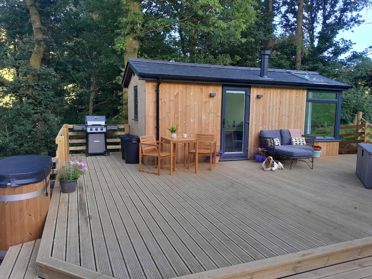 COVID 19. Wir werden zusätzliche Vorsichtsmaßnahmen treffen, um sicherzustellen, dass die Hütte so sauber ist, wie wir sie nur machen können. Ein herrliches Chalet, eingebettet zwischen den Bäumen und dem Land von Darowen. Dieses geräumige Chalet mit 1 Schlafzimmer ist ideal für Erkundungstouren in der malerischen Landschaft des Dyfi-Tals. Es gibt viele verschiedene Spaziergänge, die du angehen kannst, und wenn du dich entscheidest, es ruhig angehen zu lassen, lege die Füße hoch und genieße die atemberaubende Aussicht vom Balkon oder von unserem neu installierten Terrassenbereich mit Feuerstelle/Grill.