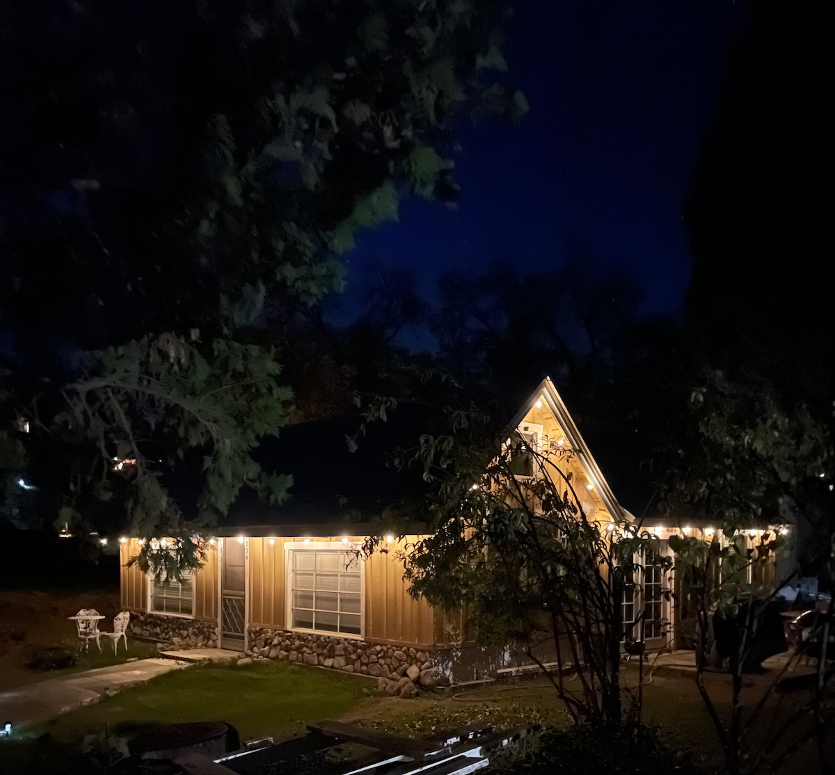 Bezauberndes A-Rahmenhaus in der Nähe von Yosemite (32 Meilen), Bass Lake (23 Meilen), Sequoia und Kings Canyon! Unser niedliches Ferienhaus mit 2 Schlafzimmern ist der perfekte Ort, um nach einem Tagesausflug zum See oder Park zu entspannen. Wir haben eine voll ausgestattete Küche, eine Waschmaschine und einen Trockner, einen Grill und eine Terrasse zum Essen im Freien. Das Haus ist mit WLAN, 3 Klimaanlagen (oben und unten) und Raumheizungen ausgestattet. Beobachte die Sterne in der Nacht oder sieh Hirsche auf dem Hof grasen. Genieße unsere niedliche, friedliche Gegend auf 1 Hektar Land!