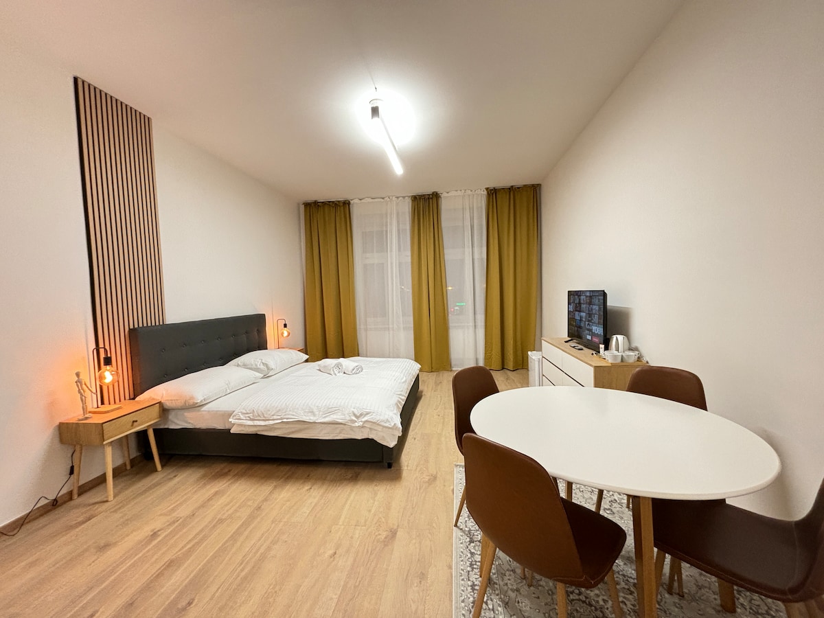 Welcome to Floor's Residence in the heart of Prague, we are a 10-minute walk from Wenceslas Square and the National Museum. There will be a private bathroom with a toilet at your disposal, mini fridge, microwave, kettle, smart TV. A kitchen corner with microwave in the common space. There is also a metro and tram stop within a 5-minute walk. All our rooms are decorated in a stylish and modern design, with comfortable new furniture, providing a comfortable stay after a busy day.